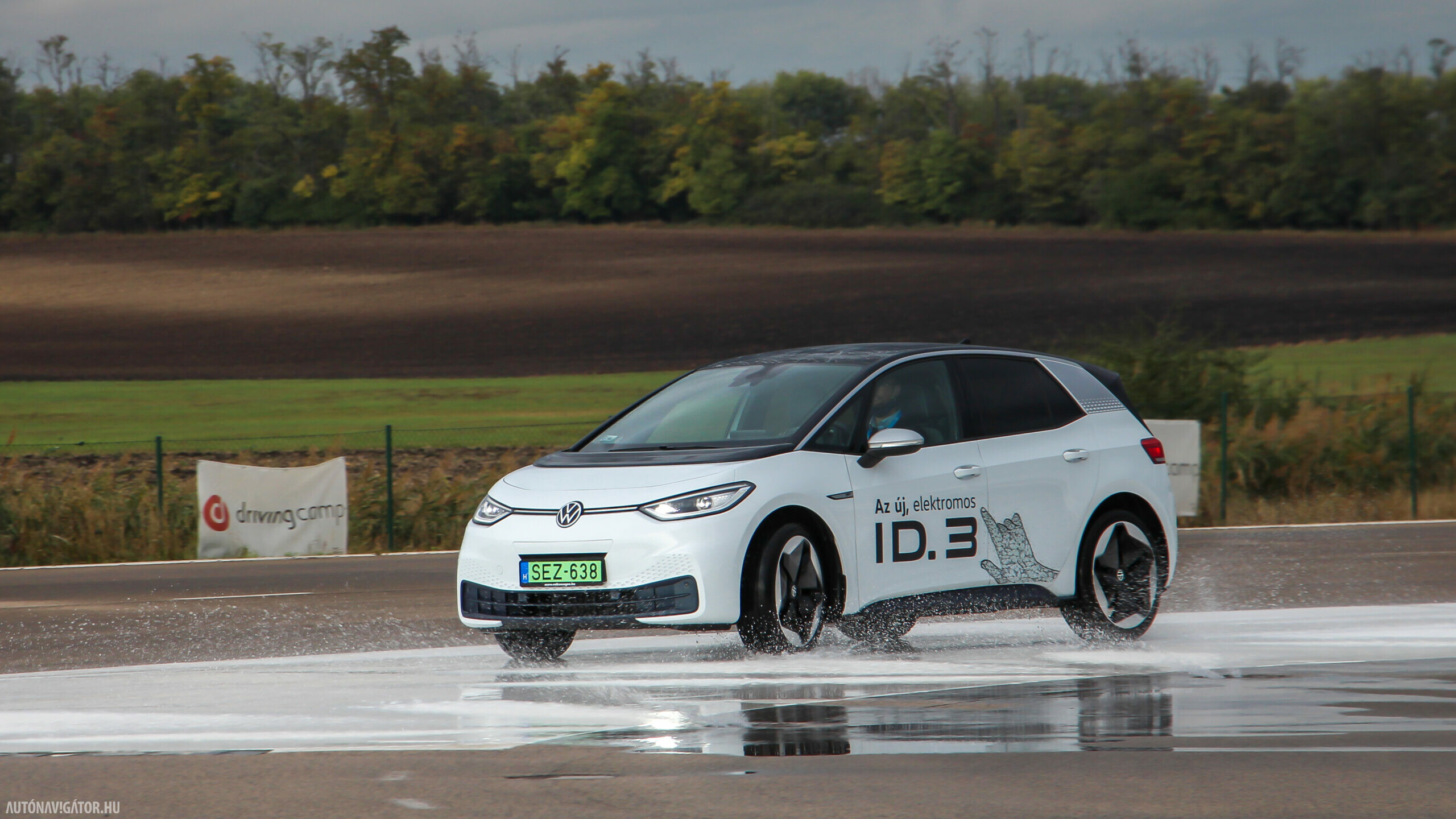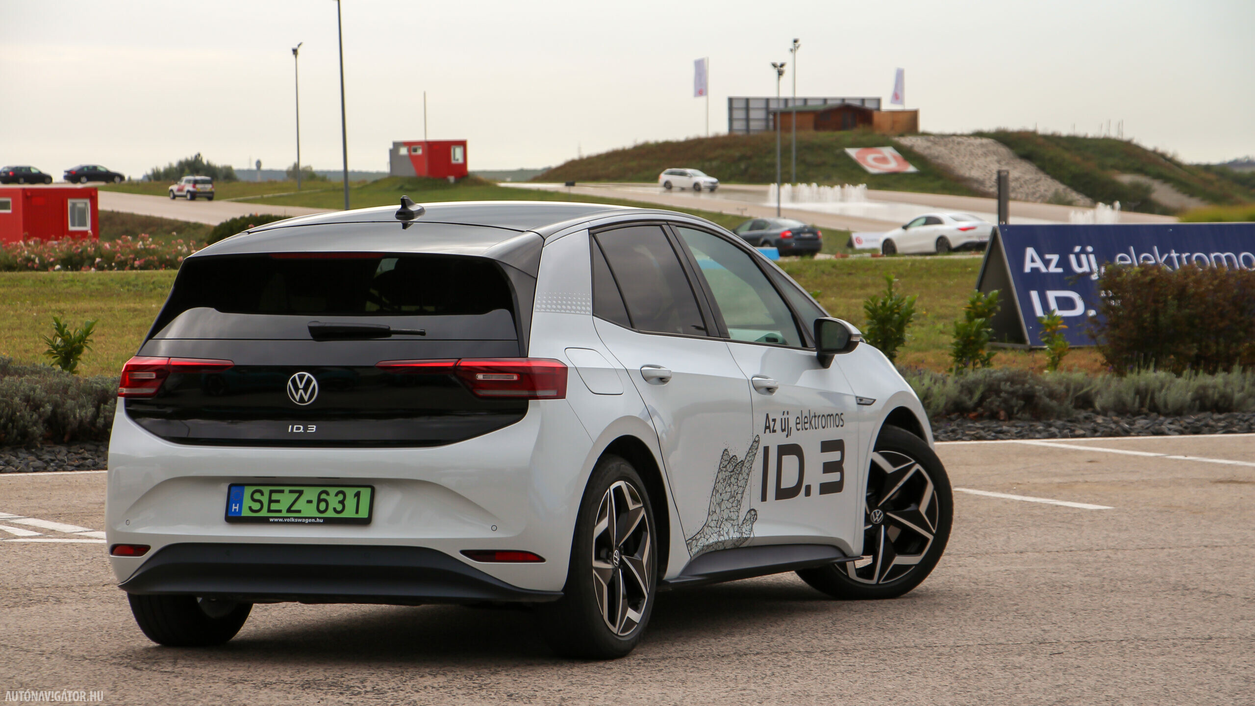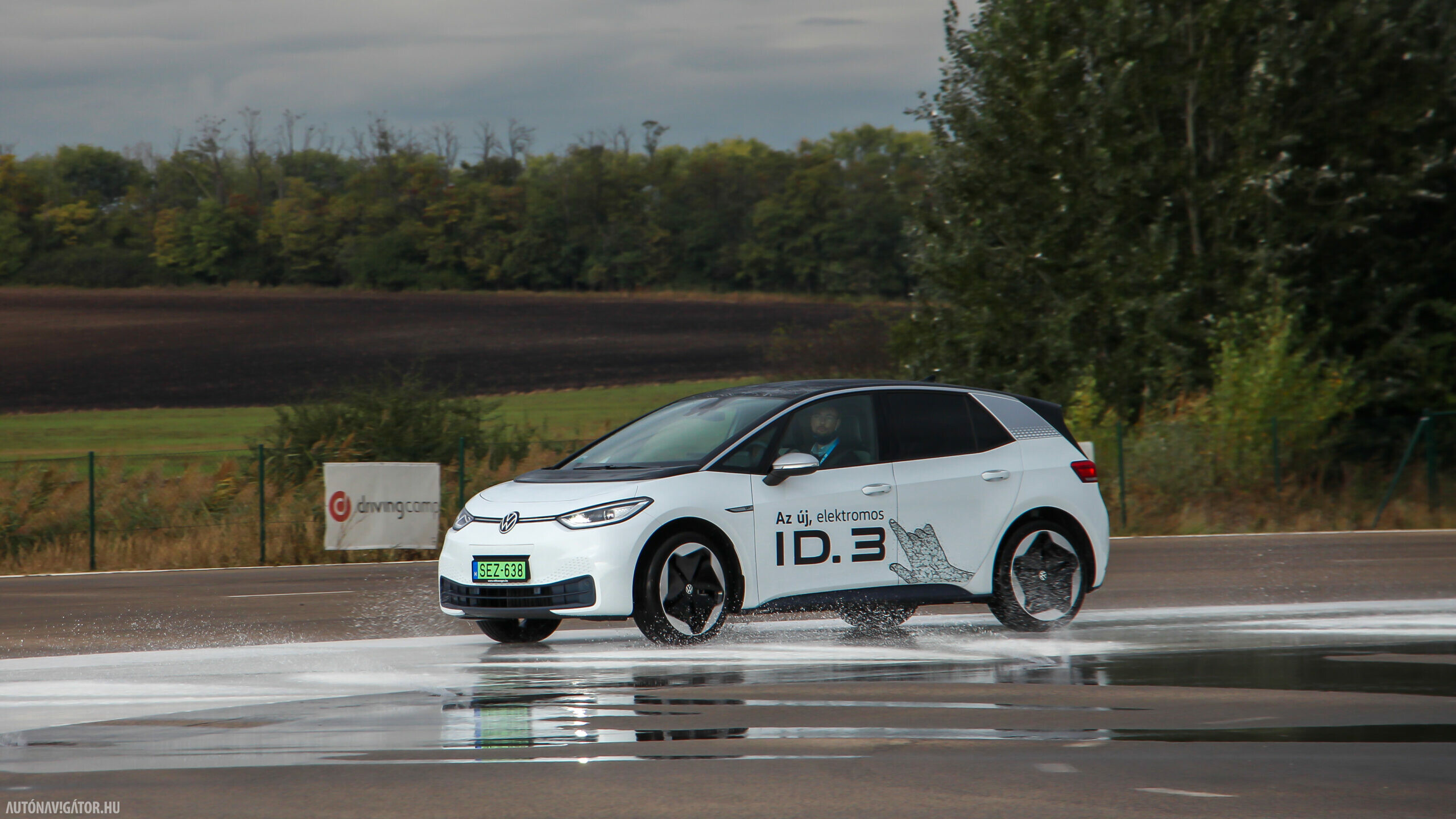 A kompakt hosszúsághoz valóban a középkategóriára jellemző, 2765 mm-es tengelytáv társul, az MEB platform továbbá lehetővé tette a leginkább logikus akkumulátor-elhelyezést: a lapos és persze vízhűtésű (és - fűtésű) pakkot a padlólemezre építhették, alacsony tömegközéppontot és tökéletes súlyelosztást adva. Talán ezért is merte a Volkswagen rögtön egy vezetéstechnikai pályára, a drivingcampre vinni a menetpróbát, ahol éles helyzetekben, tempós fordulókban is kipróbálhattuk, hogy mit tud az ID.3: extrém helyzetekben is stabil maradni. Igaz, a legfontosabbat egy szűk városi kör is megmutatta volna: a hátsókerékhajtásnak nem csak az köszönhető, hogy a kormányzás mentes a hajtási befolyásoktól, hanem a rendkívül jó manőverezhetőség, a szerény fordulókör is.
