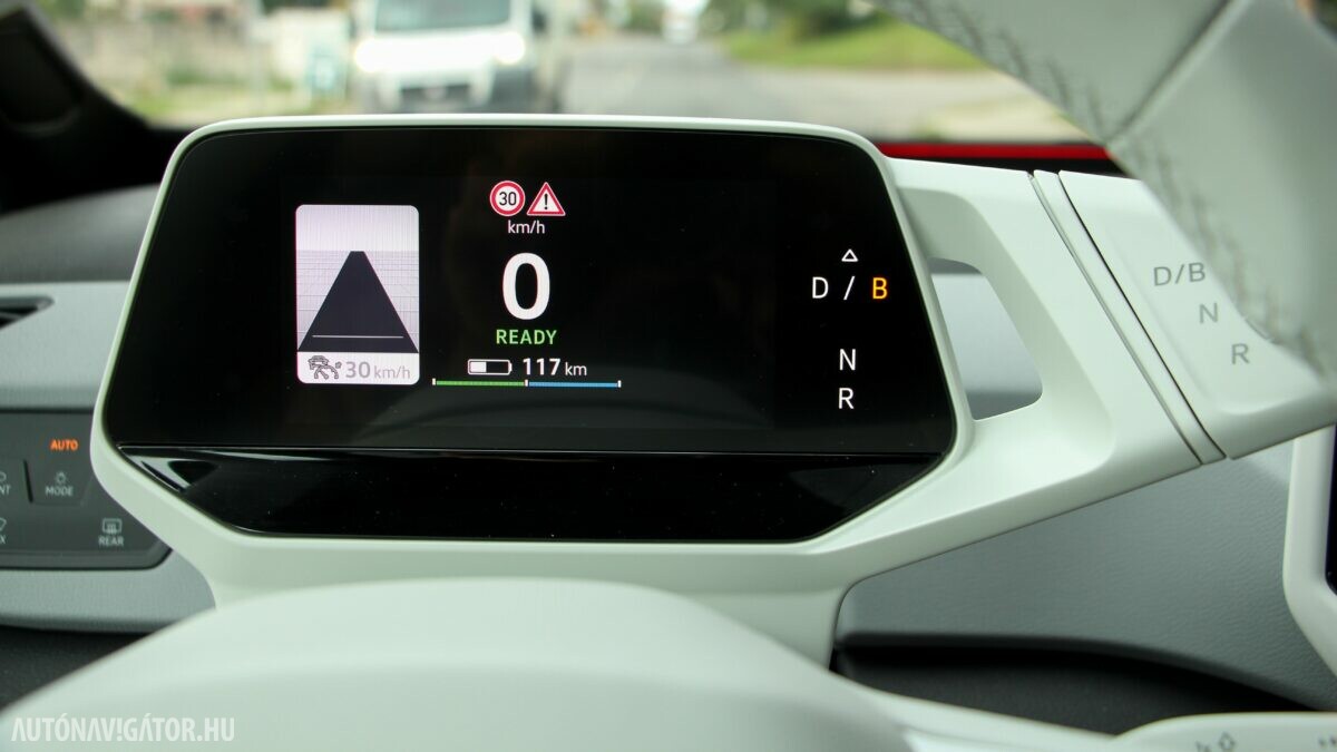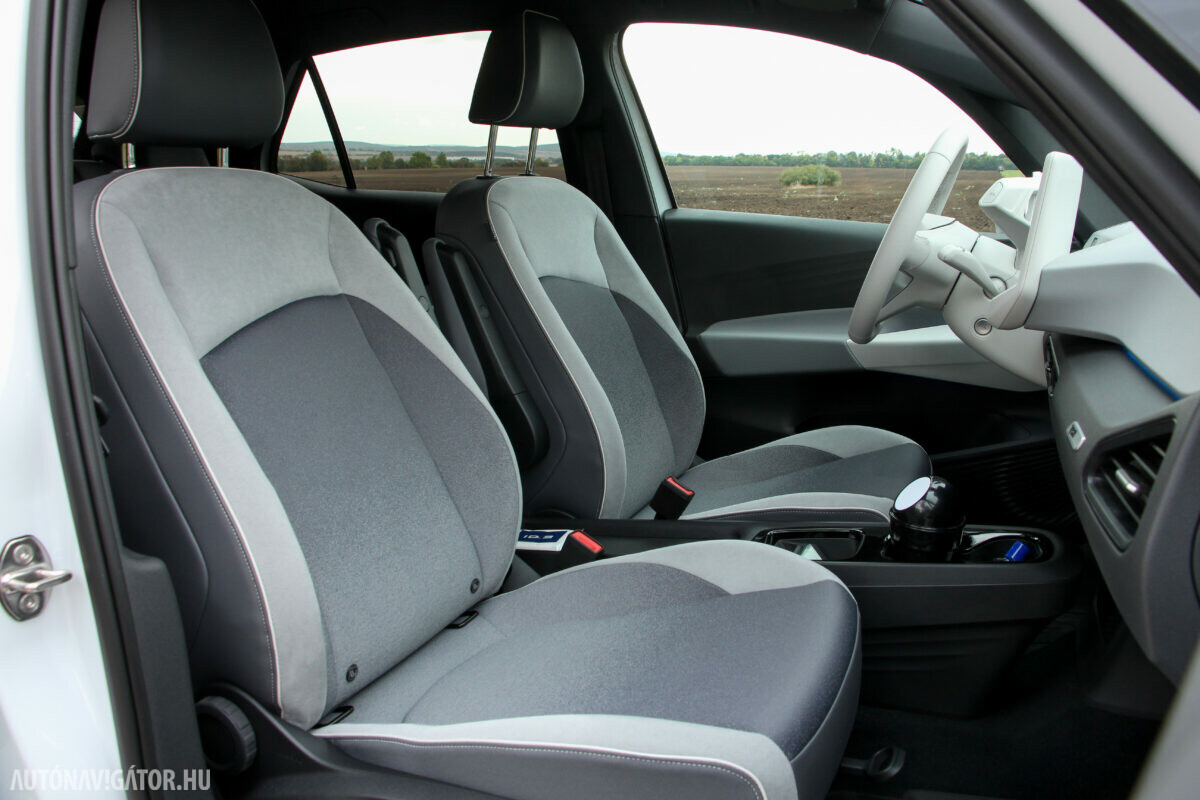 A 204 lóerős teljesítmény és a 7,3 másodperces 100-as sprint papíron sem tűnik rossznak, aszfalton pedig letaglózó. Még egy szintén alapjaitól villanyautónak tervezett Nissan Leafből átülve is feltűnő, hogy az amúgy csöppet sem könnyű, 1,8 tonnás ID.3 nem tűnik nehéznek, tömegéhez mérten kifejezetten légiesen mozog. Bár a budapesti kátyútengerben még nem autóztunk vele, de az első tesztkör alapján a rugózása is kényelmes, pedig nem szerény, 18-20 col méretű kerekekkel készül. Meglepő józanság, hogy a felnik alapáron nem könnyűfémek, hanem acélok, az egészet kitakaró dísztárcsákkal. Hasonló – józan – spórolásból elég sokkal találkozhatunk. A jelentős fékenergia hasznosítás miatt hátra csak dobfékek kerülnek, amit izmos hajtásnál mondjuk meg lehet izzasztani, hiszen az ESP is segíti a sofőrt, ha túlvállalt egy-egy kanyart. Mégpedig nagyon finoman, de intenzíven avatkozik be, akár a vészvillogót is felkapcsolva.