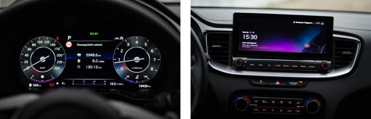 A műszerfal tökéletesen ötvözi a hagyományos értékeket a modern technológiávalA digitális műszeregység 12,3 colos, míg a központi képernyő 10,25 colos: bőven elég nagy mindkettőMegmaradt a gombokkal vezérelhető klíma