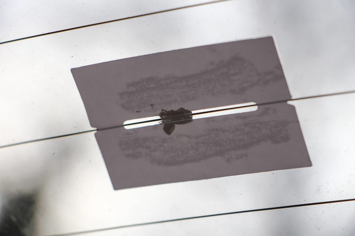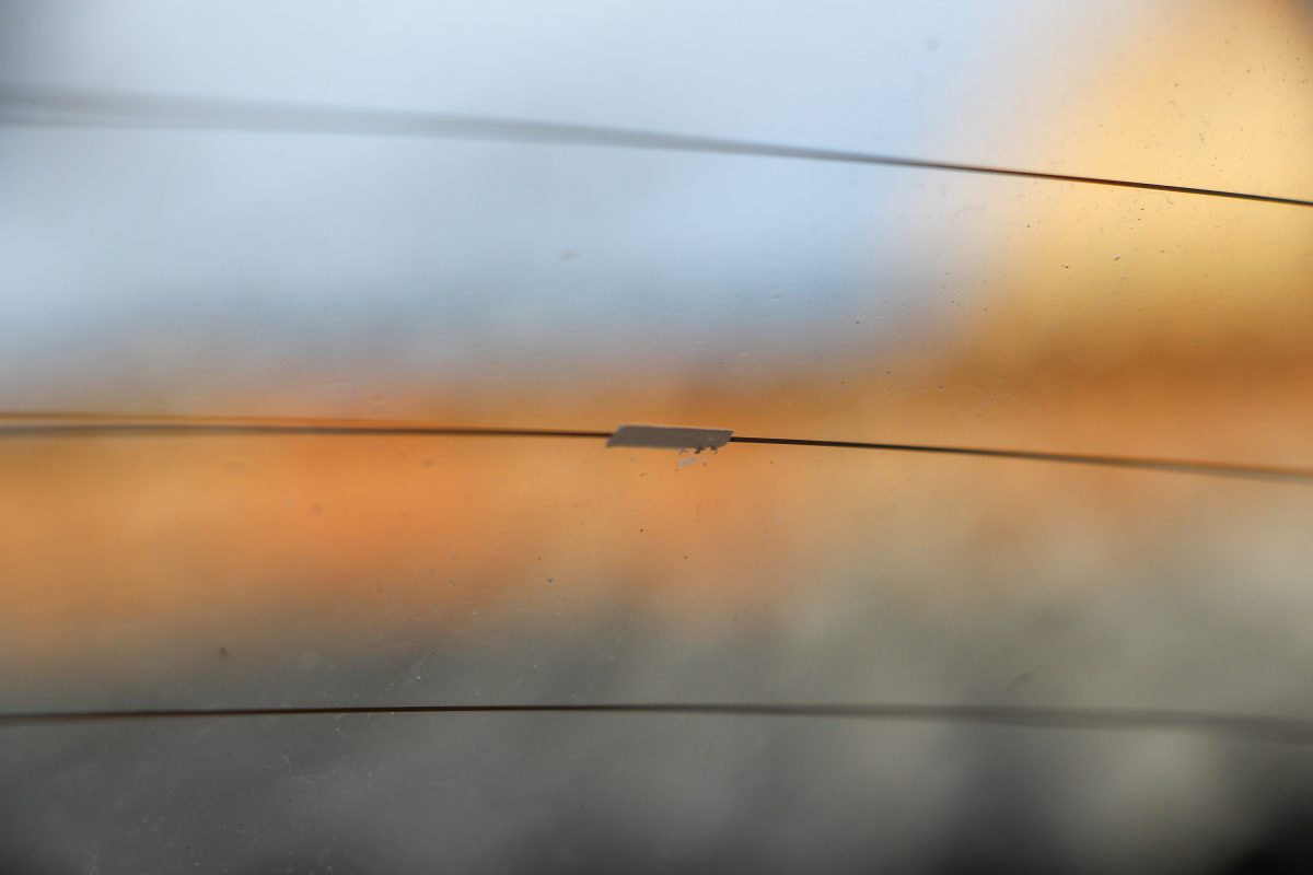 A javításhoz nem egész 1 órára (ez nekem a december végi szabadság alatt adódott) és a készleten kívül még két dologra van szükségünk: legalább 5-10 Celsius fokos hőmérsékletre és egy általános üvegtisztítóra, hiszen a felületet először is zsírmentesíteni kell. Persze még az előtt lokalizálni kell a hiba, a fűtőszál megszakadásának helyét. Ez lehetséges, hogy nem is egyszerű. Ehhez nyilván az első lépés, hogy felismerjük párásodáskor, melyik csík nem működik. A következő lépés már az, hogy megtaláljuk a konkrét szakadási pontot. Ez jellemzően szemmel felfedezhető. Legalábbis ezt gondoltam én is, aztán elsőre nem találtam meg. A Loctite azt írja, szükség esetén használjunk ohm-mérőt, én inkább még egyszer végignéztem a szálat, és végül kiszúrtam a hibát. Nem konkrét szakadás, mintha csak megnyomta volna valami épp a fűtőszál közepét. [BANNER type="1"]
