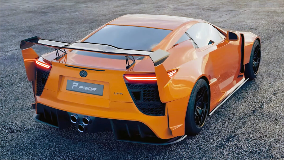 Az elképzelés legjobb részei az autót már-már középmotorosnak láttató, hatalmas hátsó légbeömlők, a Nürburgring Edition limitált LFA széria gyári légterelőjétől alig különböző hátsó szárny, amit kreatívan kötöttek össze a hátsó szélesítések végéből kiálló függőleges vezérsíkkal. Nem maradhattak ki a csomagból a még nagyobb felnik és a LED technológiás első és hátsó fényszórók sem, ezek sokat frissítenek az amúgy már több mint 10 éves formaterven.