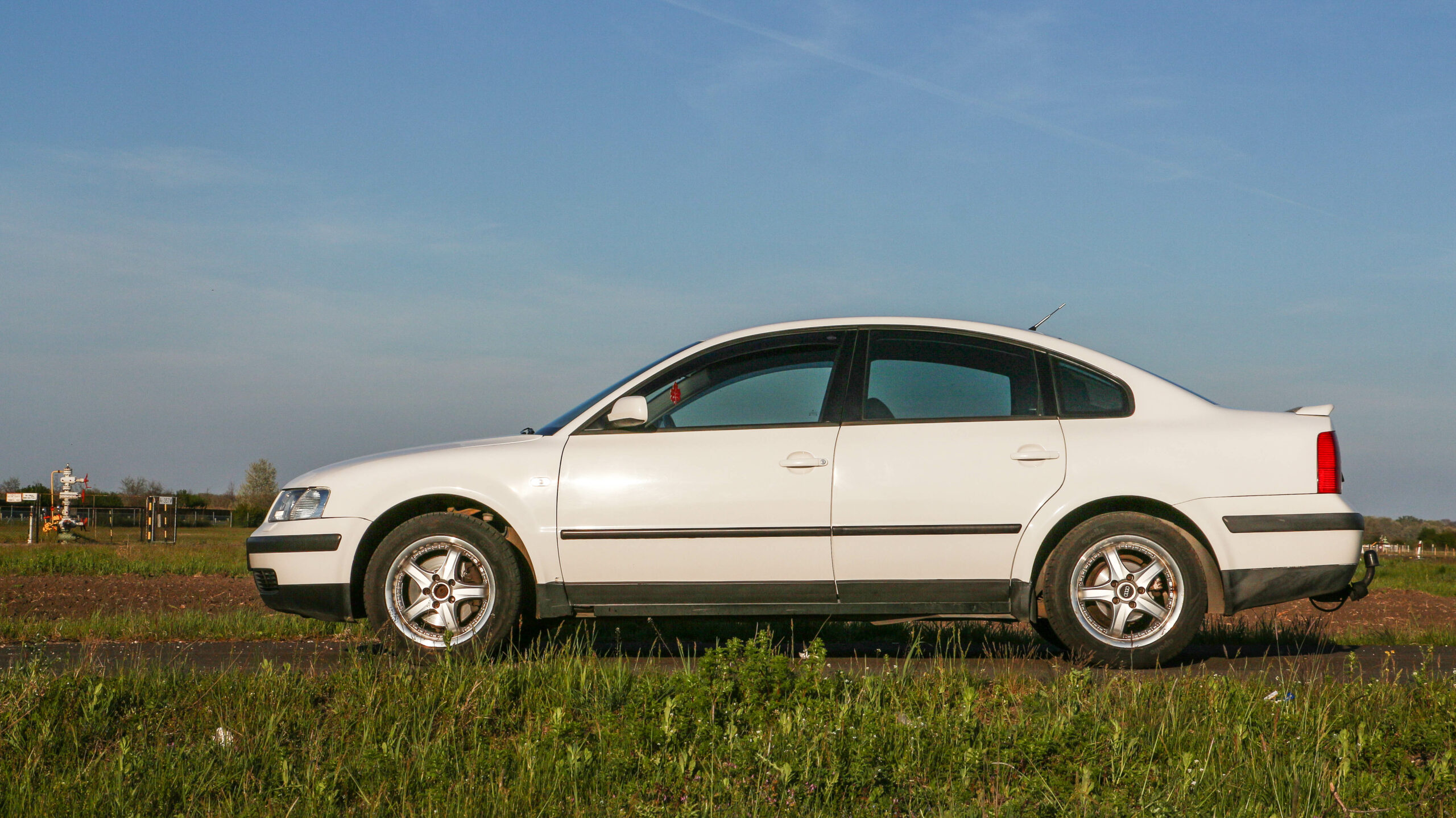 Oldalról jól látszik a Passat hosszán a családi autó jellege - ezt úgy érték el a német mérnökök, hogy a Bora méretű korabeli Audi A4 padlólemezébe beleszabtak egy kis extra hátsó lábteret