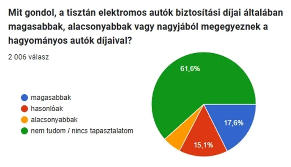 A válaszadók harmada (33%) nyíltan a magas árakat jelölte meg a casco elutasításának okaként. A lélektani határ éles: a többség (59%) szerint csak a „szalonautókra”, azaz a legfeljebb 3 éves járművekre éri meg cascót kötni. Az autósok pénztárcája is szűkre szabott: a relatív többség (35%) az autó értékének mindössze 1-2 százalékát tartaná elfogadható éves díjnak, ami a jelenlegi piaci árazások, valamint az autók életkora mellett nem mindig reális. Miközben az utakon egyre több a zöld rendszám, a felmérés egy meglepő információs űrt tárt fel. Arra a kérdésre, hogy miként alakulnak az elektromos autók biztosítási díjai a hagyományosokhoz képest, a válaszadók 61,5 százaléka bevallotta: fogalma sincs róla. Azok között, akiknek van véleménye, a pesszimizmus dominál: 17,6% gondolja úgy, hogy az e-autók biztosítása drágább, és csupán egy elenyésző réteg (5,7%) hiszi azt, hogy olcsóbb lenne. Ez az adat különösen fontos jelzés a biztosítóknak és a kereskedőknek: az elektromos átállást segíthetné, ha a fenntartási költségekkel, így a biztosítással kapcsolatos információk is szélesebb körben, átláthatóbban jutnának el az autósokhoz. A kutatás eredményeit látva számomra még egyértelműbb, hogy a hazai autós társadalom problémái lényegében mindig ugyanonnan erednek: rengeteg embernek igazából nincsen pénze biztonságosan, a kellő színvonalon és a megfelelő óvintézkedések mellett autózni, de mégsem tudja letenni a négykerekűt. És persze, a casco is fontos példa erre, ám sokszor megfelelő karbantartásra, vagy egy szett gumira sincs pénz, ami jóval fontosabb lenne.