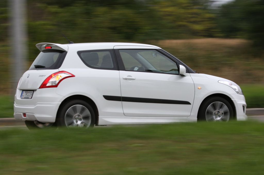 Háromajtós karosszériával is meglehetősen jó kiállású jármű az új Suzuki Swift, különösen, ha a tesztautóhoz hasonlóan a gyári tartozékkatalógusból is kiválasztjuk a megfelelő elemeket. A háromajtósként elérhető csúcs, azaz GLX felszereltségű modell megjelenését spoilerkészlet, könnyűfém felni, részben hasított bőrrel behúzott kormány, valamint egyedi váltógomb tette igazán különlegessé, sokan utána is fordultak az utakon. De nem csak a megjelenése miatt foglalkozunk az autóval, hiszen most először volt lehetőségünk arra, hogy a
