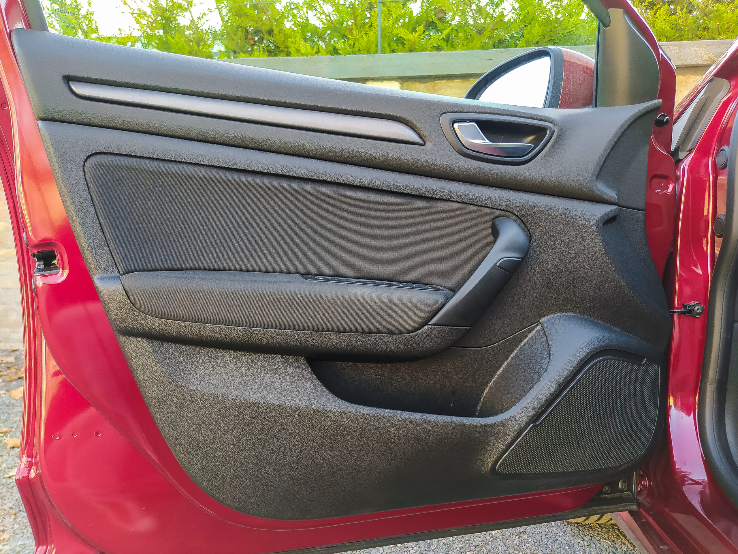 Mindkettő bordó Megane-ra igaz a vonzó látványon túl, hogy ami bent van, az is tökéletesen elég. Arra persze igen kevés az esély, hogy valaki beülve egy fullextrás autónak nézze őket, de hozzá kell tenni, hogy ugyanilyen valószínűtlen, hogy bárki is a belépő csomagra tippeljen. Ebben persze az is segít, hogy már alapáron is korrekt az autó: az ülések puhára párnázottak, a műszerfal és az ajtókárpitok gumiszerűen nyomogatható anyagból vannak, és kellemesek a szövetbetétek is, bár könnyen koszolódnak. Technológiából sincs hiány: az alapcsomaghoz is digitális műszeregység és központi érintőképernyő jár. Persze, van hová fejlődni, az előbbi kijelző ugyanis csak 7 colos és két LED visszajelző egészíti ki, hogy kitöltse az egykoron analóg órákat rejtő rést, az utóbbi rendszernek pedig feláras a navigációja. Az automata Renault kártya és az ülésfűtés is feláras, ahogy a tolatókamera és a radarok is, és természetesen az alufelniért is fizetni kell.