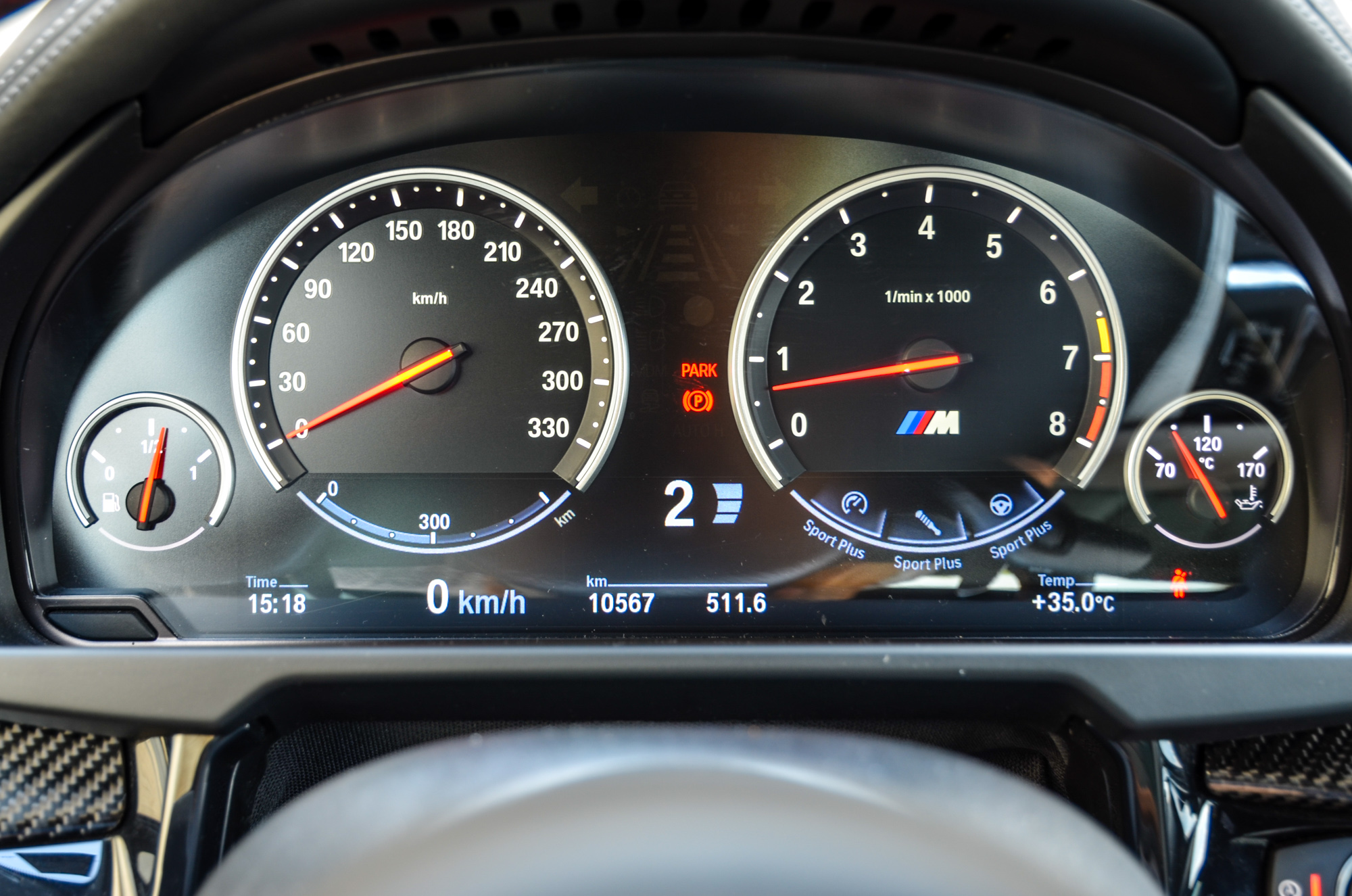 Tökéletes? Egy ilyen autóba nehéz belekötni. M-es létére komfort módban minden kellemes, a rugózás, a kormányzás, egyáltalán nem érezni, hogy egy közel 600 lóerős vadállatban ülünk. Az M gombot a kormányon megnyomva viszont, ha akarjuk minden a legkeményebb módba kapcsol, és máris versenyautós hangulat lesz úrrá a beltérben. Minden prémium érzetet ad, ugyanakkor az üléspozíció lehetne kényelmesebb. A kormány még alsó állásban is túl magasan van, a fejtámlák kiképzése domború, emiatt mindig le akar gurulni róla a fejem. Sajnos ez van, a sportosságért feláldozták a kényelmet, egy nem M-es X-ben sokkal komfortosabb fotelek várnak.