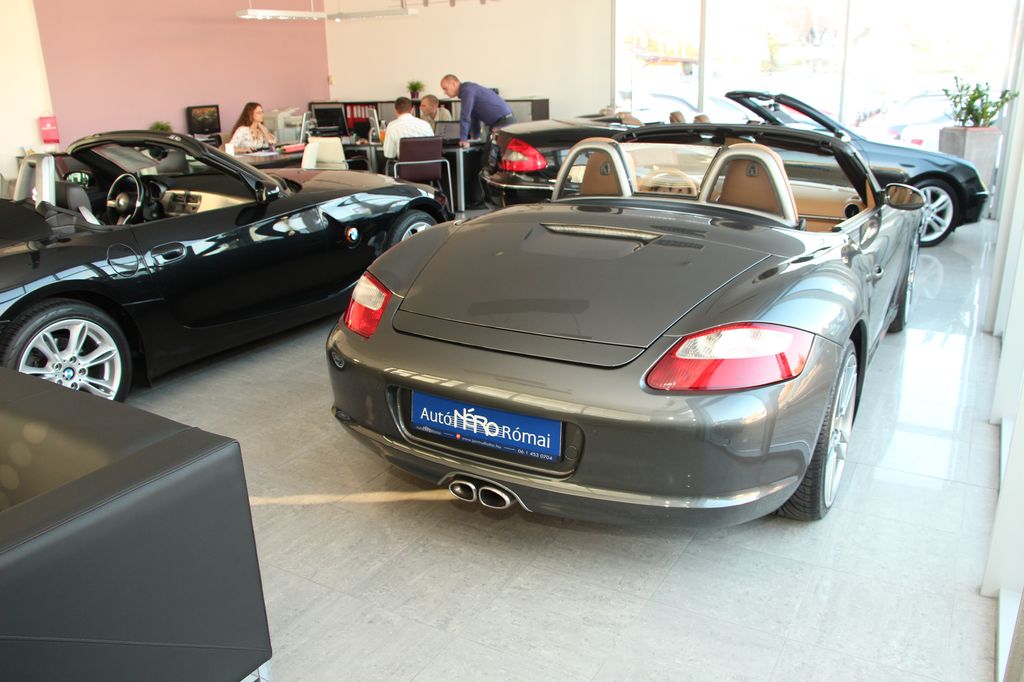 A 2006 augusztusából származó Boxster már a frissebb verzió, 3,4 literes, természetesen nevéhez és a Porschéhoz hűen boxermotorral, 295 lóerővel, 5,4 másodperces 100 km/órára gyorsulással és 272 km/órás végsebességgel. ZF gyártotta Tiptronic S automata váltója 5 fokozatú és kormánykerékről is kapcsolható. Vegyes fogyasztási értéke tűrhető, még úgy is, hogy a 11 l/100 km gyári érték tartásához komoly önmegtartóztatás szükséges. Persze simán elképzelhető, hogy aki megveszi, csak nagyritkán fogja kihasználni a menetdinamikai képességeket, hiszen miközben a gyári navigáció mondja az utat, mélynyomós Bose hifi tolhatja a zenét. Ha mégis odacsapna a sofőr a ménesnek, elektromosan hangolható a futómű, egészen pontosan a lengéscsillapítás, de vele változik a kormány rásegítése és a gázpedál érzékenysége is. Nem véletlenül drágább prémium-vetélytársainál is a Porsche, valójában nem is vetélytársa BMW-nek, Mercedesnek, más liga. A vételár szerencsére nem csak a márka és a felszereltség miatt indokolt, a 6 éves luxuskabrió 90 ezer kilométeres, szervizkönyvvel igazolt futása csekély, költeni pedig nem kell rá, még abroncsai is újak, még azok, az egyébként 19 colos, extrém alacsony oldalfalú abroncsok is lenyűgözően mutatnak rajta.