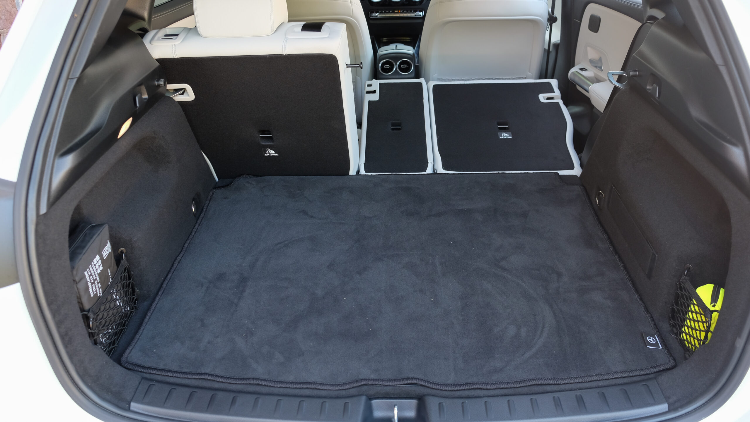 Viszont kinek nem elég 350 kilométernyi hatótáv, amikor van 100 kW-os DC töltés, amivel akár 35 perc alatt megvan a 85%-os akkuszint, de a 11 kW-os AC-vel is emészthető idő, legfeljebb 6,5 óra az akkumulátor telítése? A hosszabb töltési időn kívül is említhető persze némi kompromisszum, de ezek is emészthetőek. Az egyik, hogy a csomagtér alapmérete 435 helyett csupán 340 liter. Ez a gyakorlatban annyit jelent, hogy nincs méretes padlórekesz, csupán nagyjából annyi, amennyi a defektjavítónak, a vonószemnek és a kompresszornak kell, meg még néhány paksamétányi irat is elfér a padló alatt. A töltőkábelek (mindkettő jár alapáron), sajnos nem, de azoknak korrekt táskát ad a Mercedes. Ezen kívül még annyi említhető, hogy a második üléssorban az alulra épített (bruttó 79,8, nettó 66,5 kWh-s) akkumulátor miatt kissé magasra került a padlószint.