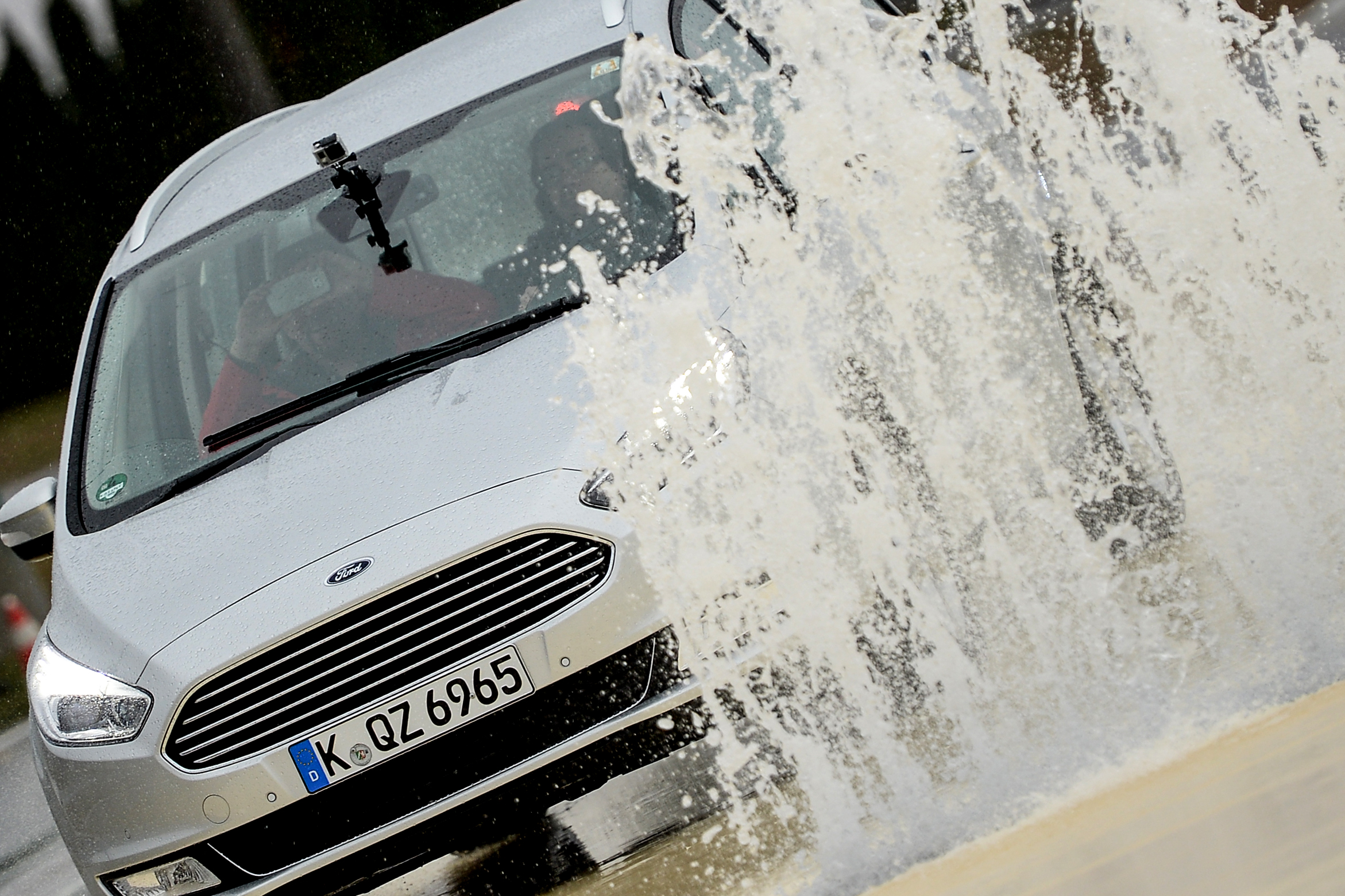 A műgyantás kanyarban való stabilitása is érezhetően jobb volt a összkerekesnek. Rossz hír viszont, hogy a csapatni vágyók még kikapcsolt kipörgésgátlóval sem tudnak látványosan keresztbe csúszni, ilyenkor is orrtolósan viselkednek a Ford nagyméretű egyterűi. Egy családi autót elvégre nem ilyen célra kell használni, arra ott van a vadonatúj Focus RS, amely drift módot is kapott az ilyesfajta célokra. Kezelhetőség szempontjából mindkét modell a Fordtól megszokott színvonalat hozza. A futómű határozott, támogatja a tempós kanyarvételt, ugyanakkor nem kell arra számítani, hogy kirázza a belső szerveinket. A tesztelt 180 lóerős TDCi dízel a hatfokozatú duplakuplungos váltóval jól együttműködik, és megfelelő dinamikát nyújt a nagy méret és frontfelület ellenére is.
