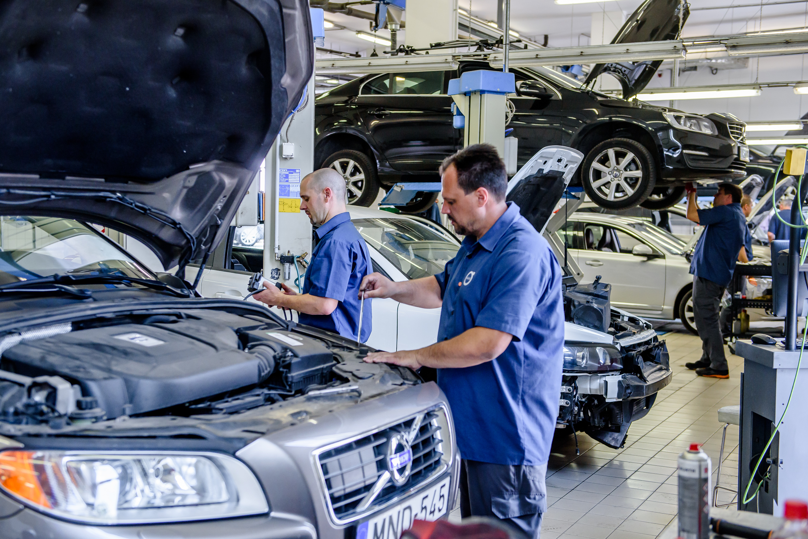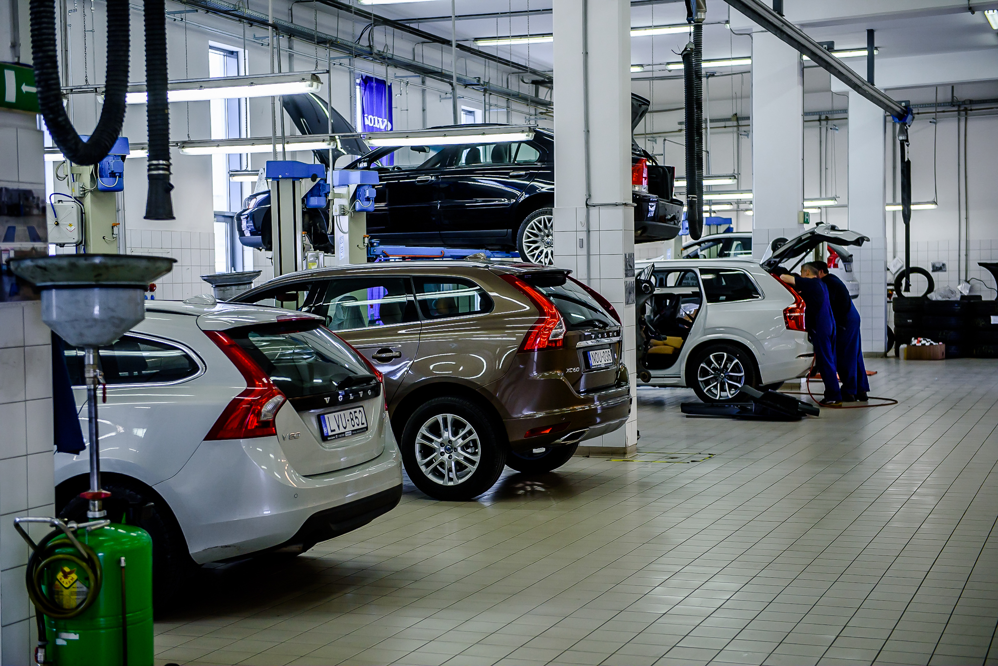 A szalon megújulása mellett talán fontosabb a hatékonyabb szerviz kialakítása. A Volvo Galéria szerelőcsarnokában szinte mindent kicseréltek, a hagyományos csápos emelőket földbe süllyesztettekre cserélték, ennek helytakarékossági és praktikussági szempontjai is vannak. Mivel nincsenek hagyományos oszlopai, akár nyitott ajtókkal is megemelhető, így egyszerre több dolgot is csinálhatnak egy autón. A munkarend is jelentősen változott, korábban egy emelőn lévő autóra egy szerelő jutott, most emelőnként két ember dolgozik és a csapatokat folyamatosan forgatják, hogy mindenki dolgozzon mindenkivel. Négy emberenként van egy felelős, aki esetenként be is segíthet. A szervizre kapható időpontok várakozási ideje jelentően lecsökkent, a korábbi nagyjából két hétről 5-7 napra előre már tudnak időpontot ajánlani.