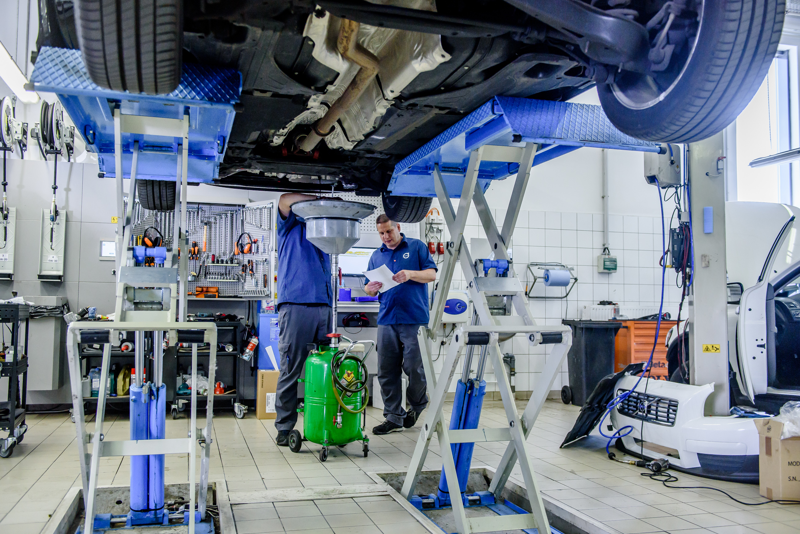 Egy-egy, akár emelőn lévő autóval egyszerre két szerelő foglalkozik, az új rendszer szerint két állomásonként van egy felelős. A külföldről átvett rendszer hatékony, a szervizidőpontokat már nem kettő, hanem akár egy hétre előre is tudják adni
