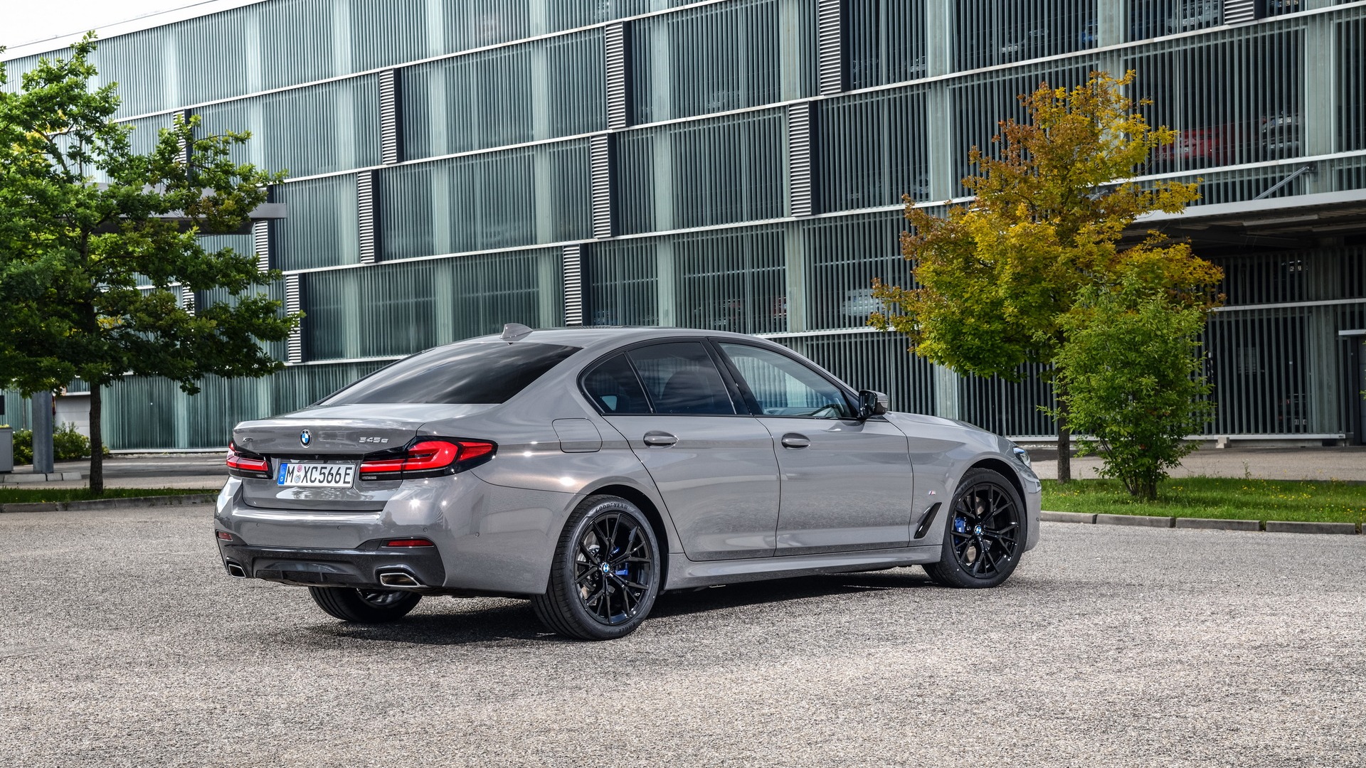 Elektromos hatótávolsága egy töltéssel 54-57 kilométer, melyhez az 530e-hez hasonlóan egy 12 kWh-ás, 400 voltos feszültségű akkumulátorban tárolja az energiát. A hátsó üléssor alá épített, a BMW által házon belül fejlesztett akkumulátor miatt a benzintankot hátrébb, a hátsó tengely fölé építették, mellyel a csomagtér padló alatti részéből vissza kellett venniük, így az 545e csomagtartója 410 literes. A csak szedánként és öszkerékhajtással kapható új csúcs 5-ös hibrid kombinált fogyasztási értéke 2,1-2,4 liter, amit rendszeres hálózati töltésekkel a gyártó szerint el lehet érni. A töltési lehetőség Type2 oszlopról is legfeljebb 3,7 kW-os lehet, konnektorról a 10A-s töltőkkel jellemzően 2,3 kW adódik. A maximális töltési sebesség miatt a teljes töltésig minimum 4,5 óra telik el, otthoni hálózatról ez több is lehet, melyen az otthon is kiépíthető töltődobozokkal gyorsíthatunk.