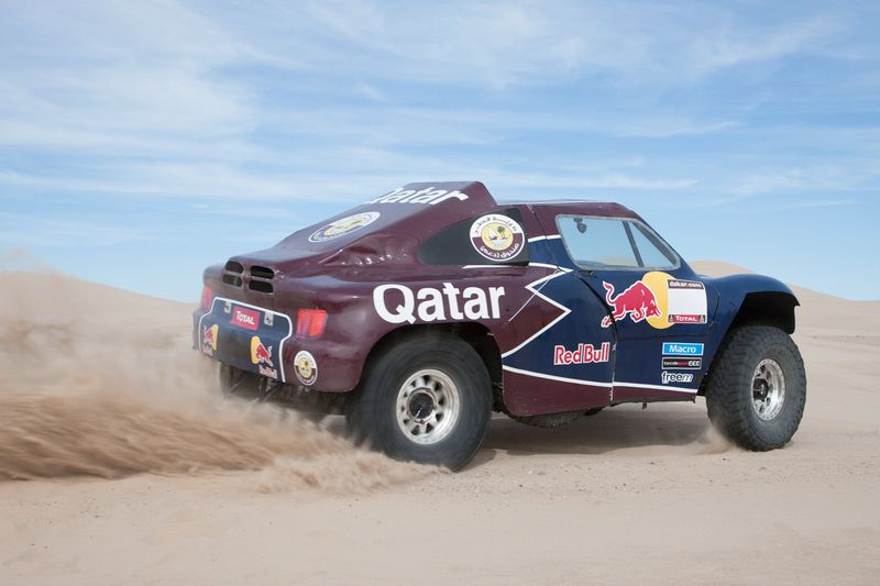 Carlos Sainz, Nasser Al-Attiyah. Két polihisztor, két olyan autóversenyző, aki raliban és terepraliban is nyert már egy-két címet. Elég sokat. És a Dakaron is győztek már - a spanyol matador 2010-ben, a lövészetben olimpiai bronzérmes katari pedig rá egy évre. Mindketten még Volkswagennel, csapattársként, de egymás ellen is látványosan harcolva. [BANNER type="1"] És most, a január 5-én kezdődő 2013-as Dakaron ismét kollégák lesznek, Peterhanselék fő kihívói, méghozzá Katar és a Red Bull szponzorációjával, tehát nagyon nem kispályásan. Az autó egy buggy, (hátsókerékhajtással és 735 lóerős, V8-as Corvette-motorral), amit Al-Attiyah építtetett az amerikai Jefferies Racinggel a tavalyi, Robby Gordon-féle hummeres tapasztalataira is támaszkodva. Buggyval utoljára Jean Louis Schlesser nyert Dakart még 2000-ben (Afrikában), azóta mindig gyári összkerekesek bizonyultak a leggyorsabbnak. Sorrendben a Mitsubishi, a Volkswagen, tavaly meg a Mini.