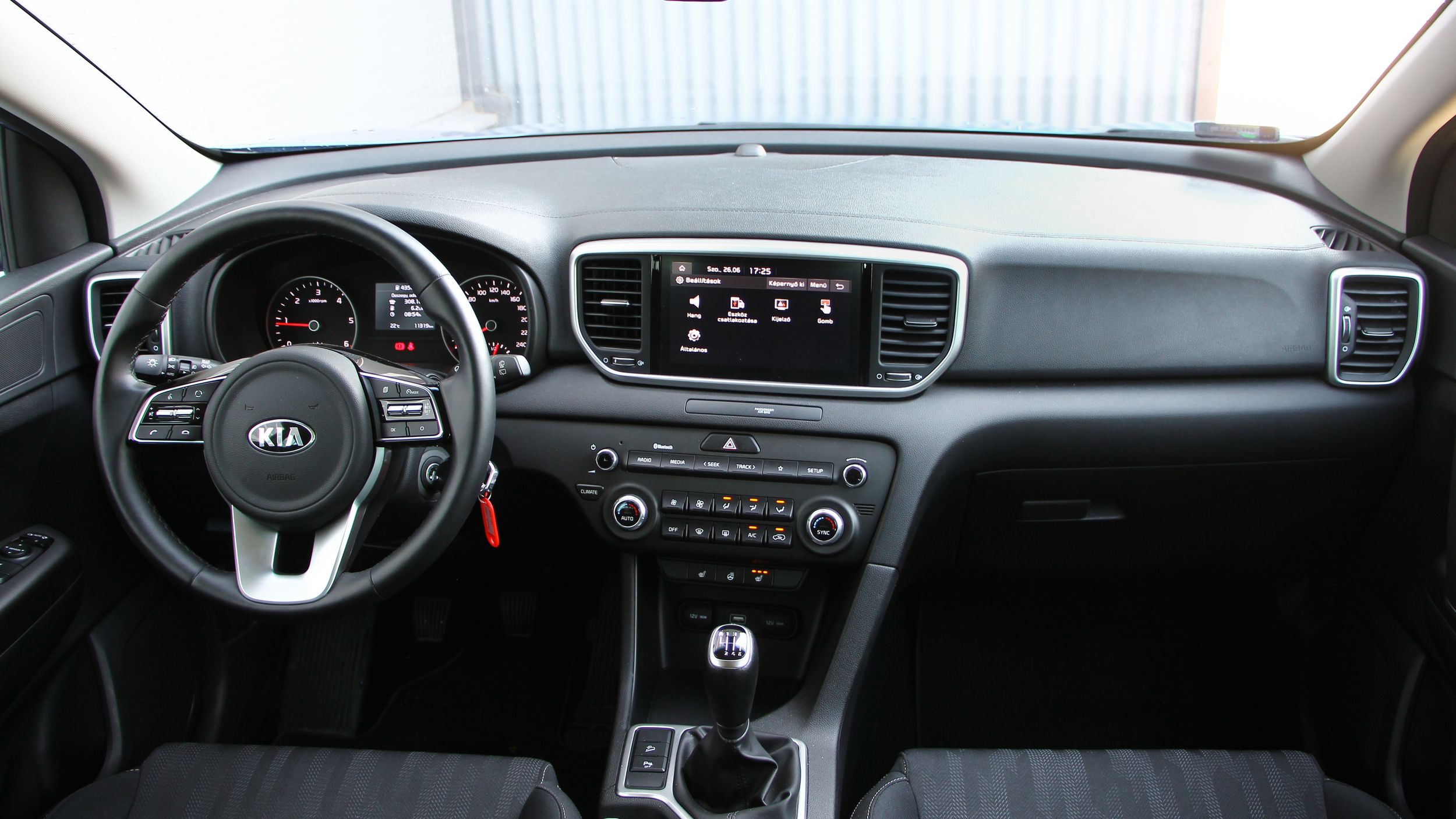 Mert lehet összkerékhajtással is rendelni a Sportage-et, ha valaki többet szeretné terepen használni, avagy kicsit nehezebb terepen, hiszen ott is képes boldogulni. Persze gumiabroncstól is függően. De SUV-sága ellenére minden pillanatban éreztem az autón, hogy szorult bele némi terepjáró vér is. Száraz időszakban, könnyebb terepen próbáltam csak ki a tudását, de bőven lehettem volna merészebb is, még fronthajtással is. Ugyanakkor aszfalton kissé billegős tempós kanyarokban, ellenben az úthibákat szépen kisimítja a futómű. Viszont a hatfokozatú manuális sebességváltóval nem alakult harmonikusan a kapcsolatom, többször is megszámolgattam vele a fogaskerekeket, a kar mozgása is kicsit „fakanál a főzelékben” érzés volt, úgyhogy vágyakoztam kicsit a hétfokozatú duplakuplungos automatáért, amivel még kényelmesebb lehet a Sportage.