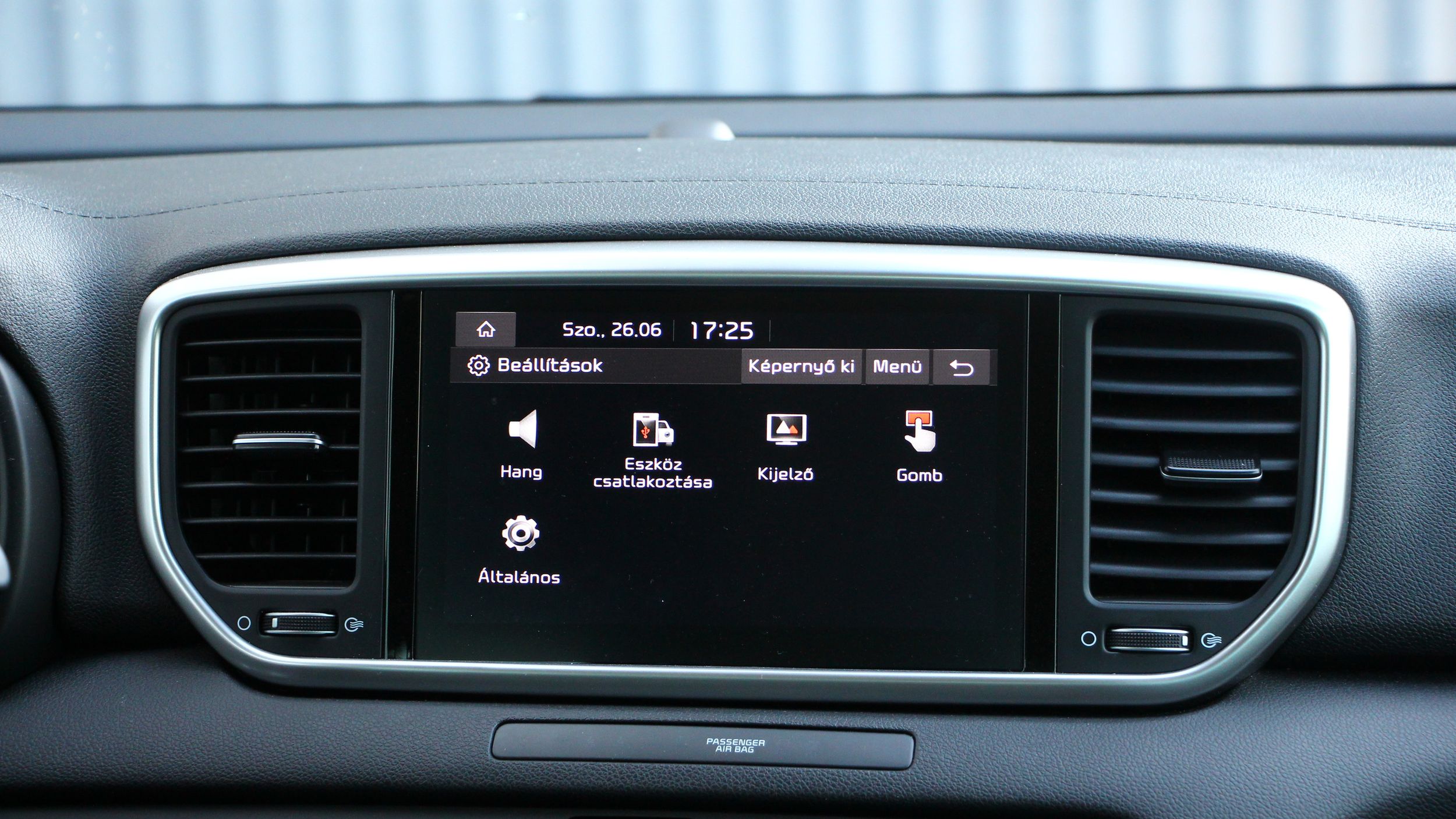 A csomagtér méretének csökkenésében a 48 voltos, lítium-ion akkupakk a ludas, ezt kellett elhelyezniük a mérnököknek úgy, hogy a lehető legkisebb tér vesszen oda. Itt tárolódik az az energia, amit később fel lehet használni a dízelmotor nyomatéktámogatására gyorsításnál vagy épp emelkedőn. Na, nem mintha erőtlen lenne az 1.6 CRDi. Még ha nem is hangzik soknak a 136 lóerő egy 1,7 tonnás autóhoz. Azért van ott még 320 Nm forgatónyomaték is, szóval önmagában is élhető lenne a dízel Sportage, de tény, hogy az indítógenerátoros rendszer „kisimítja a működését”. Valamint kisebb fogyasztást ígér. A gyári adatok szerint 5,8 és 6,3 liter között vegyesben. Ezt sikerült hozni úgy is, hogy a tesztidőszak alatt a városi közlekedés dominált, így lett 6,2 liter az átlagfogyasztás. Persze hozzá kell tenni, hogy ez a fronthajtású változat esetében értendő.