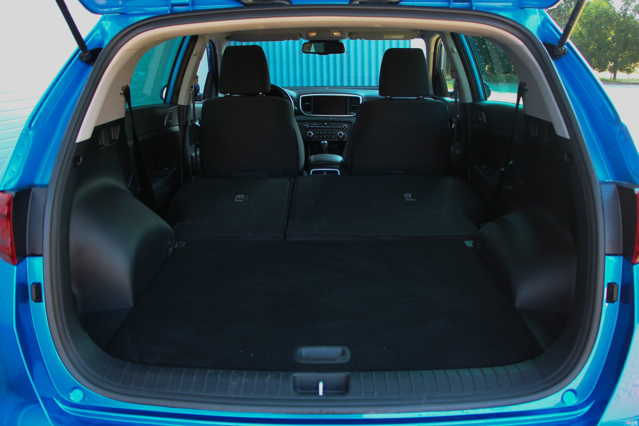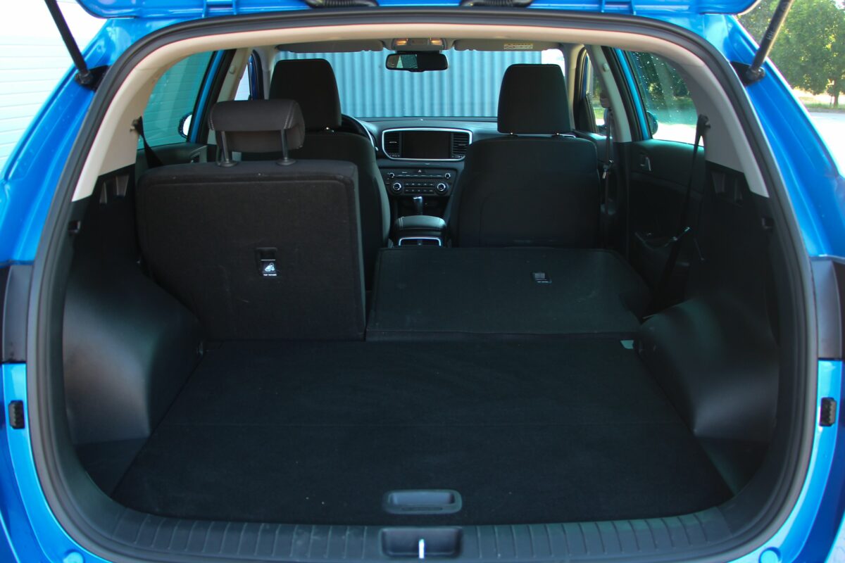 Az ergonómia mellett a kényelem is ötöst érdemel, örülök, hogy nem GT Line modell volt a tesztautó. Bár a Kia nagyon jól ért hozzá, hogyan fűszerezze sportosra a modelljeit, de a Sportage-től annyira távoli ez a fogalom, hogy jobb nem erőltetni. Nem kell bele sportülés, mert a szövetkárpitos fotelek is kiválóan tartják az utasok testét, hátul pedig hatalmas lábtér segít a kényelmes utazásban. A lágy hibridség viszont kisebb csomagteret eredményez. Méghozzá 41 literrel kisebbet. Alaphelyzetben ugyanis 480 literes lenne a Sportage puttonya, de MHEV-ként csak 439 literes, ami egyáltalán nem katasztrófa, így is nagy a hely, és a hátsó ülések döntésével 1428 literesre növelhető.