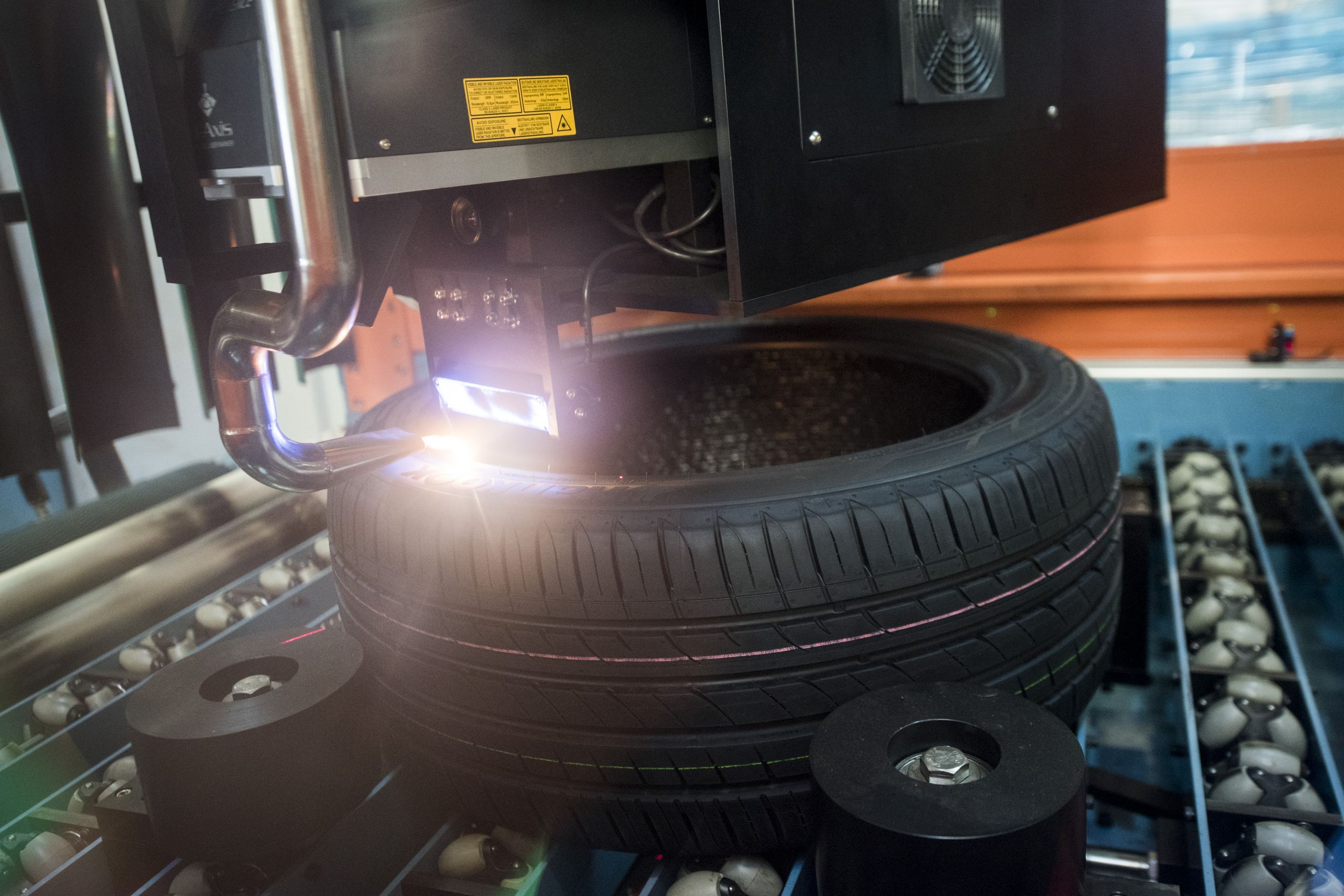 A gyártás egyik leglátványosabb része a SEALGUARD felirat lézerrel való beleégetése a gumiba. Néhány másodpercig így lángol a gumi a folyamat során