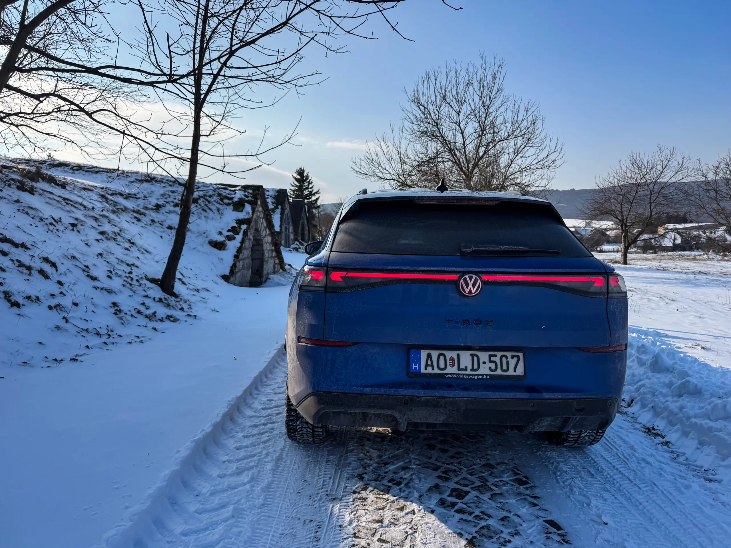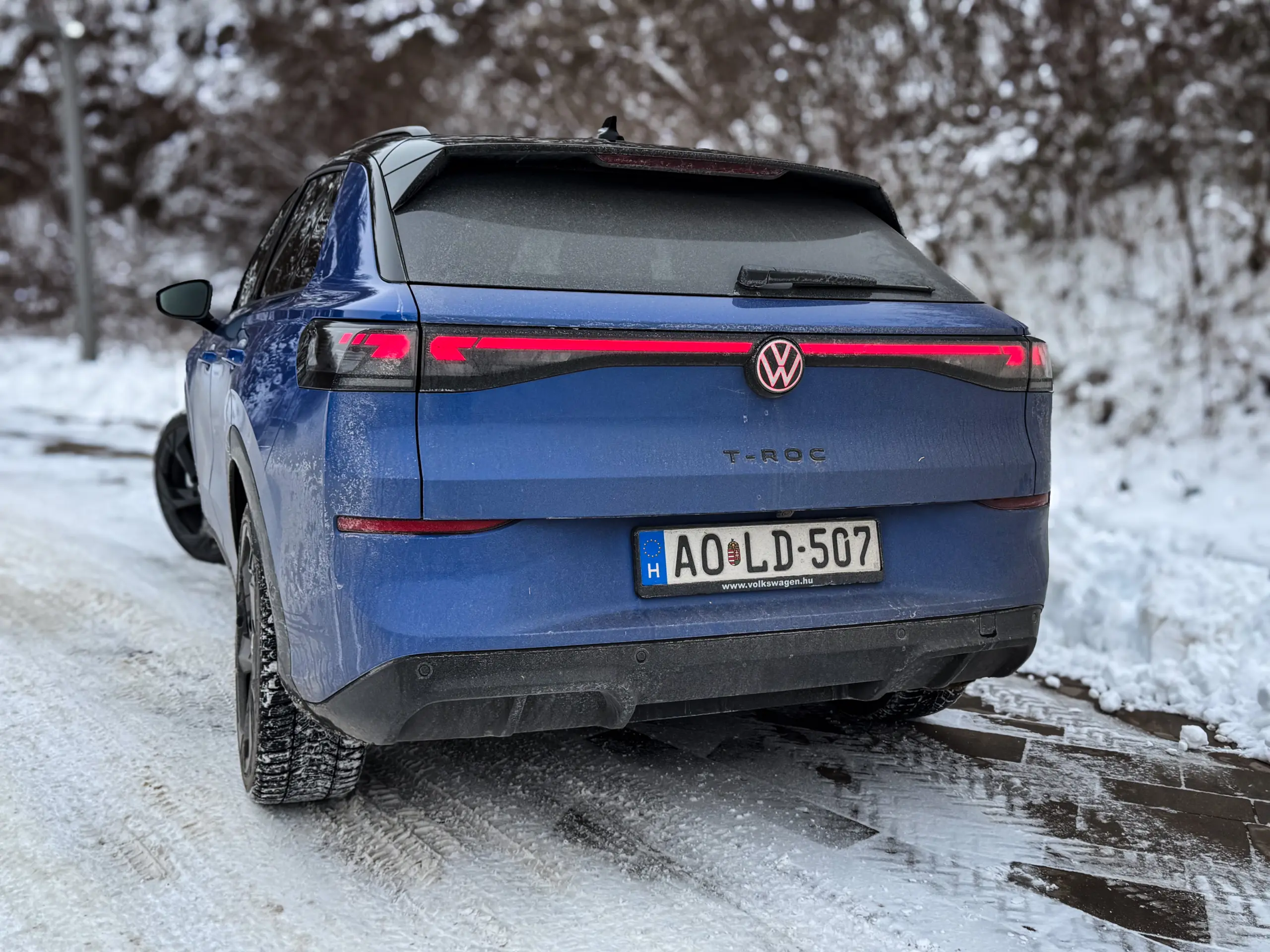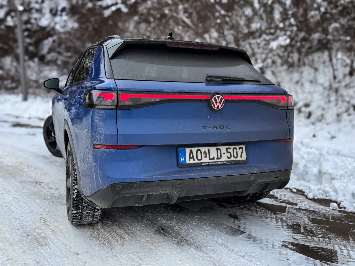 Rendkívül stabil az autó, a rugózás feszes, de nem kényelmetlenül, ez nagyon jól illik az R-Line változathoz, amelyen a 20 colos, fekete felnik elképesztően jól mutatnak, viszont a hazai utakon a kisebb átmérőjű kerekek, ballonosabb gumikkal jobb választásnak tűnnek. A kormányzás pontos, elegendő visszajelzést ad, úgyhogy összességében kellemes vezetni az autót, és ha épp tempósabb kanyargásra vetemedne a sofőr, abban is társa lesz, hiszen az adaptív futómű alkalmazkodik a különböző helyzetekhez. Emellett a biztonság is tovább javult, most már lényegében minden vezetőtámogatást megkap T-Roc tulaj, ami manapság elérhető, és ezek közül sokat már alapáron. Többek között a kiszállásnál figyelmeztető rendszert is, nehogy rányissuk bringásra, más autóra az ajtót.