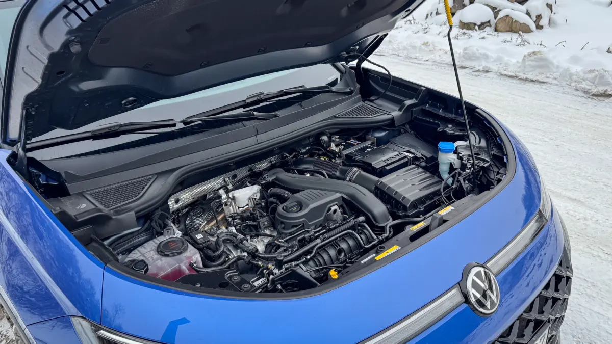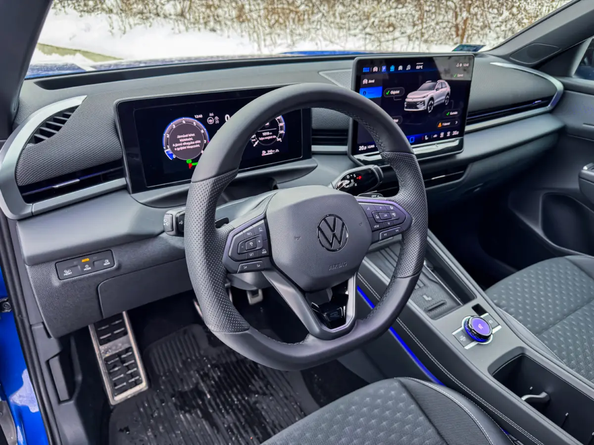 A menetpróba során a 150 lovas, 250 Nm forgatónyomatékú 1.5 eTSI-vel ismerkedtem, ami egy nagyon meggyőző hajtáslánc a hétfokozatú DSG sebességváltóval, ami az első kerekek felé küldi a nyomatékot. Csendes, kulturált járású ez a négyhengeres, amikor pedig mégis felpörög az előzéseknél, vagy csak mókából - hiszen R-Line - akkor szép, érces hangon szól. Kérhető kétliteres, erősebb változat is, ami szintén lágy hibrid, illetve érkezik majd az összkerékhajtású változat is, ám most a havas, csúszós utakon a fronthajtásúval is tökéletesen boldogultam.