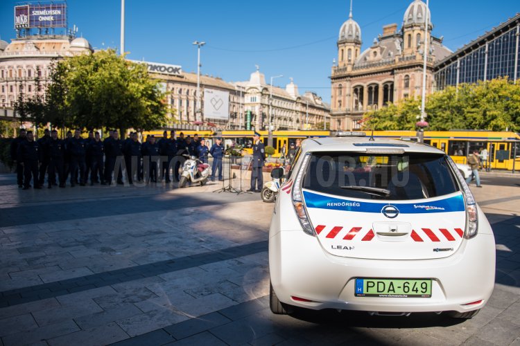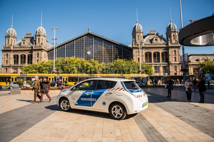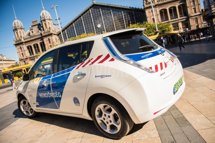 Hazánk első elektromos rendőrautója, egy Nissan Leaf Budapest VI. kerületi Rendőrkapitányságához került, számukra az önkormányzat vásárolta (Fotó: police.hu)