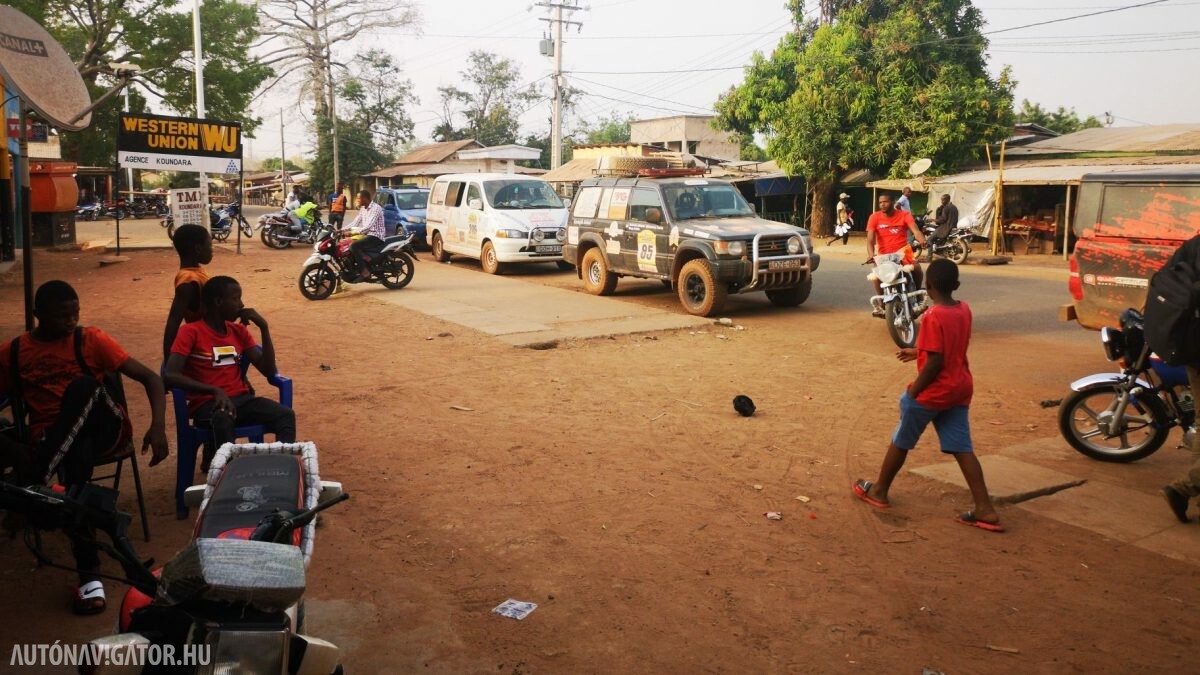 Úgy hisszük, mezei turista ritkán utazik az egyik országból való kiléptetés és a szomszédba való beléptetés között hét órát. Velünk a Szenegál és Guineai határán fekvő két ellenőrzőpont között ez történt. A hetvenhét kilométert szinte gyalogtempóban tettük meg úttalan utakon, folyómederben, mocsáron át, felrobbant kamion roncsától alig járható poros utakon. Eddig túránk során itt kerültünk legközelebb a komolyabb elakadáshoz, vagy a gyakran koppanó alváz miatt technikai meghibásodáshoz. Ez szerencsére nem történt meg, viszont egy régi ismerőssel ismét összehozott a sors, aki a szenegáli beléptetésünkért felelős finánc volt, most 1200 kilométert és három napot követően ismét legombolt rólunk tetemesebb összeget, ráadásul egy idegen állam, Guinea területén. „Ez Afrika” – írták szervezőink az itinerben.