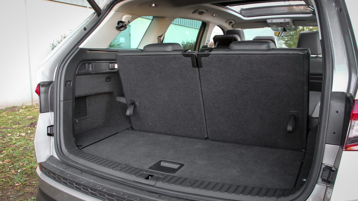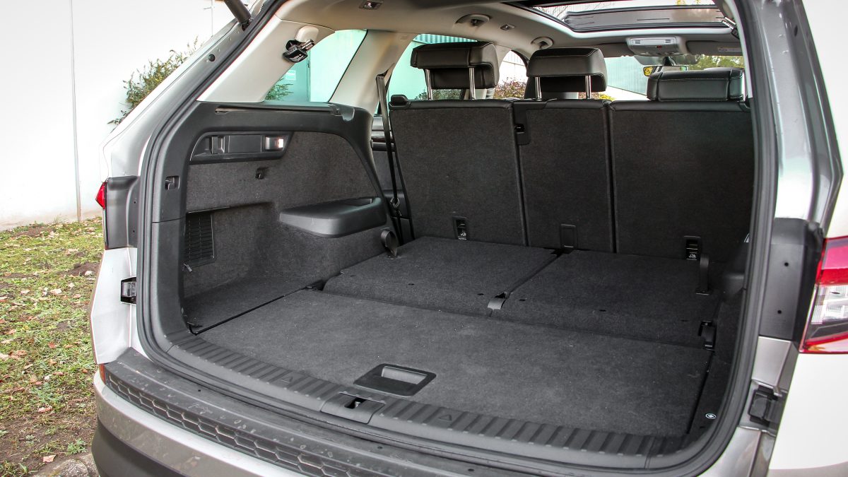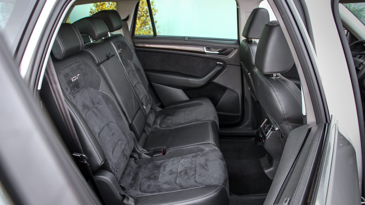 Rendkívül tág tartományban nyújtható és szélesíthető a moduláris MQB platform, és ebben a Skoda elég nagy művész. Annál többet egyik Volkswagen márkánál sem hozznak ki belőle, mint náluk, igaz a Fabia még nem erre került, de az Octaviától fölfelé az összes. A Kodiaq hatalmas, de egyáltalán nem tolakodó, csupán kellemesen hosszú, de az öt métertől azért messze van. Az 1882 milliméteres szélesség sem az, ami majd megizzaszt a kapun beálláskor, vagy a mélygarázsban, a Kodiaq méretei elég jól beláthatóak és érezhetőek. Tükörből tökéletesen megoldható egy tolatás, hátrafelé inkább ne is pillantsunk, mert a hangár méretű hátsó rész látványától már beszorulhat a levegő. A hátsó lábtér irdatlan, 26 centin nemhogy a saját térdünk elfér, de akár hárman is az ölünkbe ülhetnének. Ezen persze kurtít, ha valaki a harmadik sorba szeretne ülni, de még úgy is kényelmes láblógatós a második sor, és a harmadik is vállalható felnőttként is.