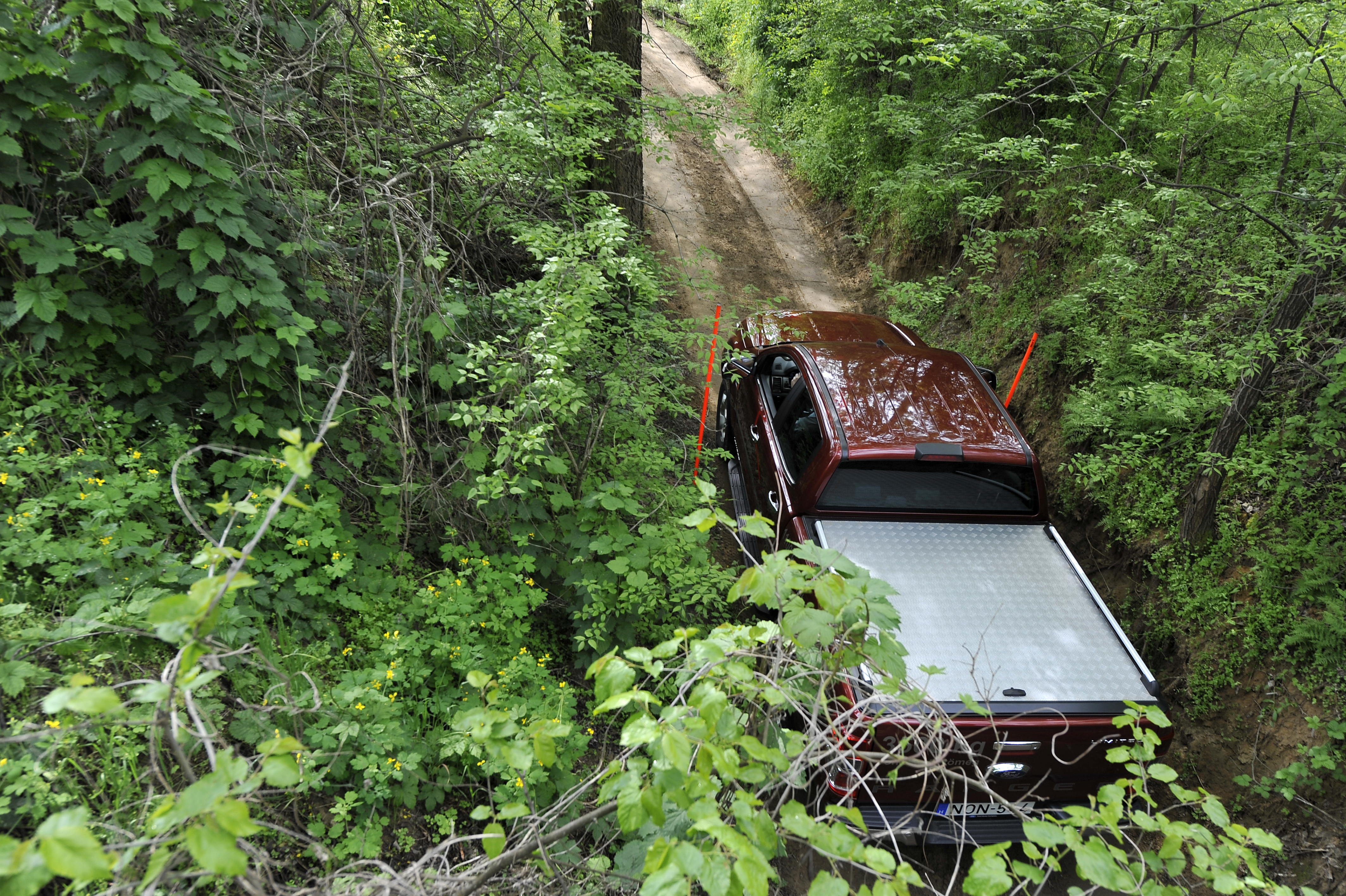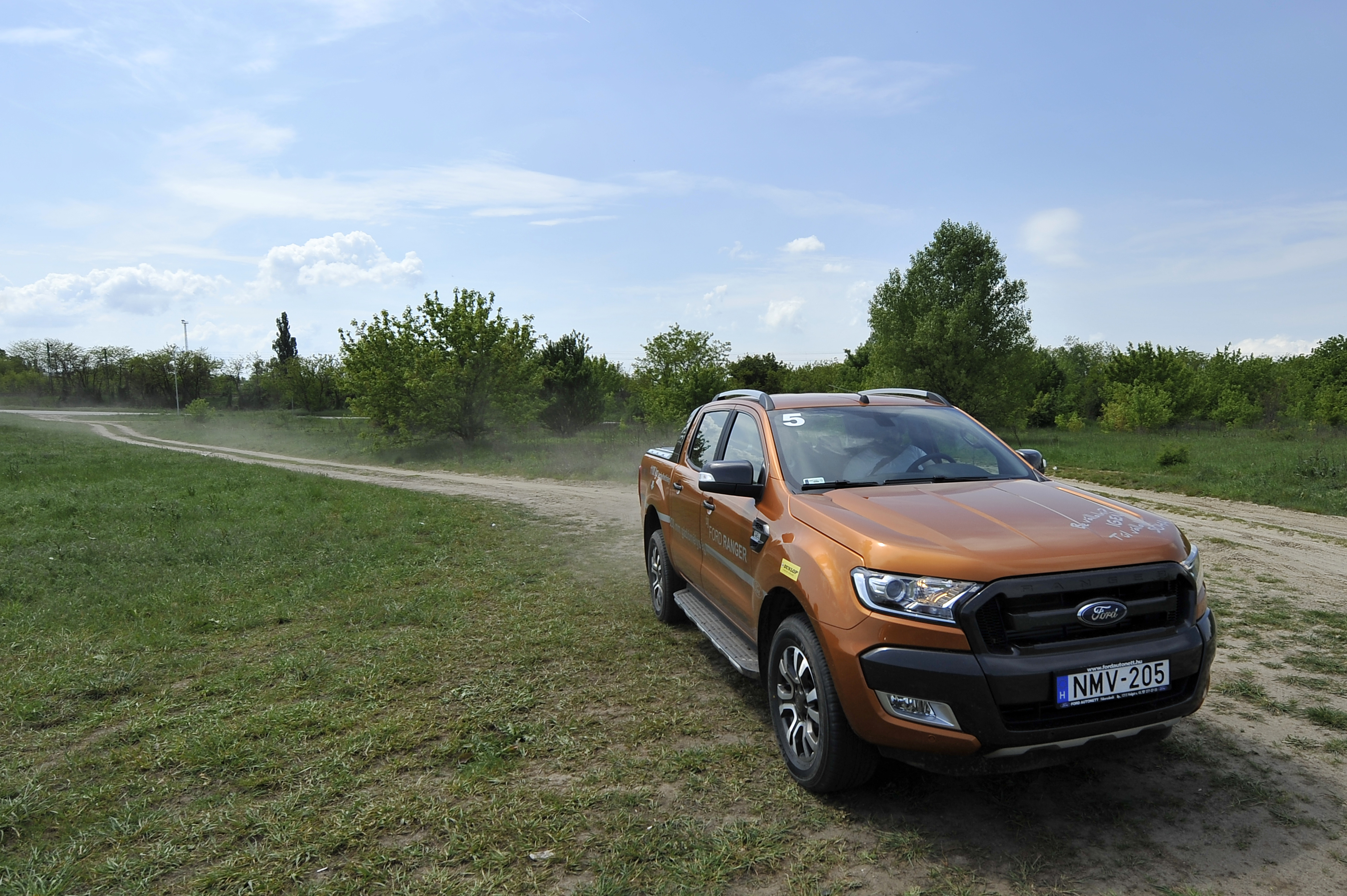 Minden újdonságot tudunk már a Rangerről, lássuk miként teljesít a mindennapi használat során. A menetpróba útvonala főként homokos, murvás talajon vezetett, elsősorban a terepjáróképességekről győződhettünk meg. Az offroadozás előtt volt némi onroad is, ahol máris jött az első meglepetés. Az utastér váratlanul csendes ahhoz képest, hogy mekkora a frontfelület, a terepgumik csendes gördüléséről nem is beszélve. Valóban személyautókra jellemző zajszintet hoz a belső, ugyanakkor a magas üléspozícióból és a rugózásból érezzük, hogy inkább teherautóban ülünk. Letérve az aszfaltúról könnyedebb terepen hibátlanul boldogult még kétkerékhajtással is, neccesebb helyeken egy kattintással azonnal válthatunk összkerékhajtásba.