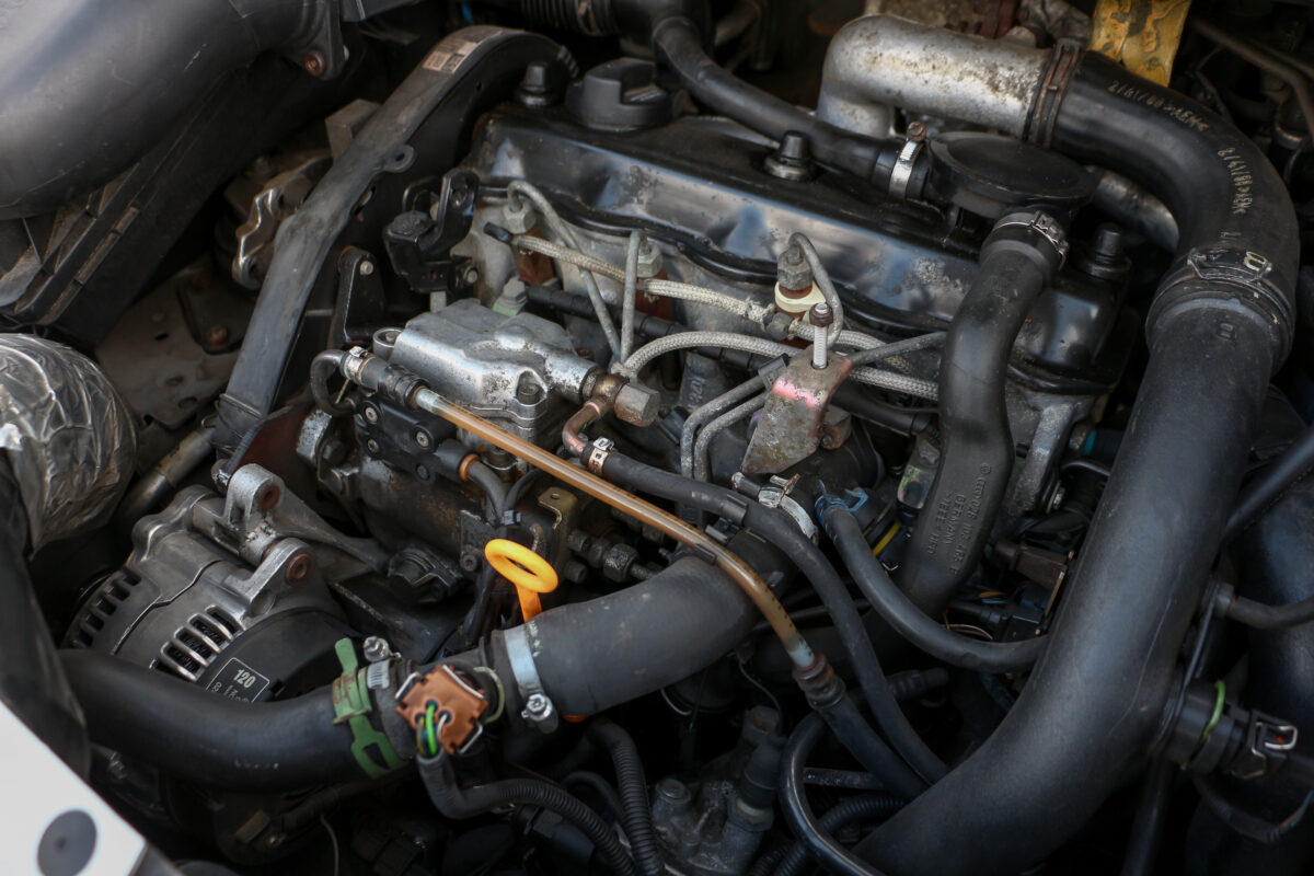 A majdnem elpusztíthatatlan adagolós 1.9 TDI - némi olajpárától és néhány házi megoldástól eltekintve tiszta és rendezett a motortér, ez ráadásul az erősebbik, 110 lóerős változat