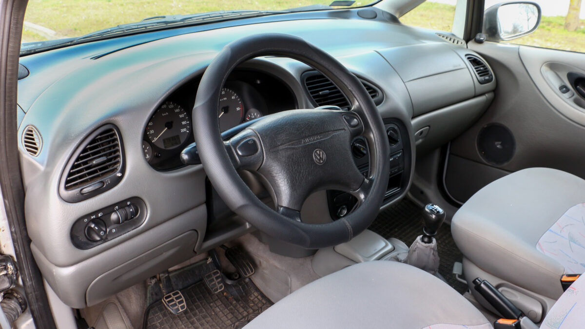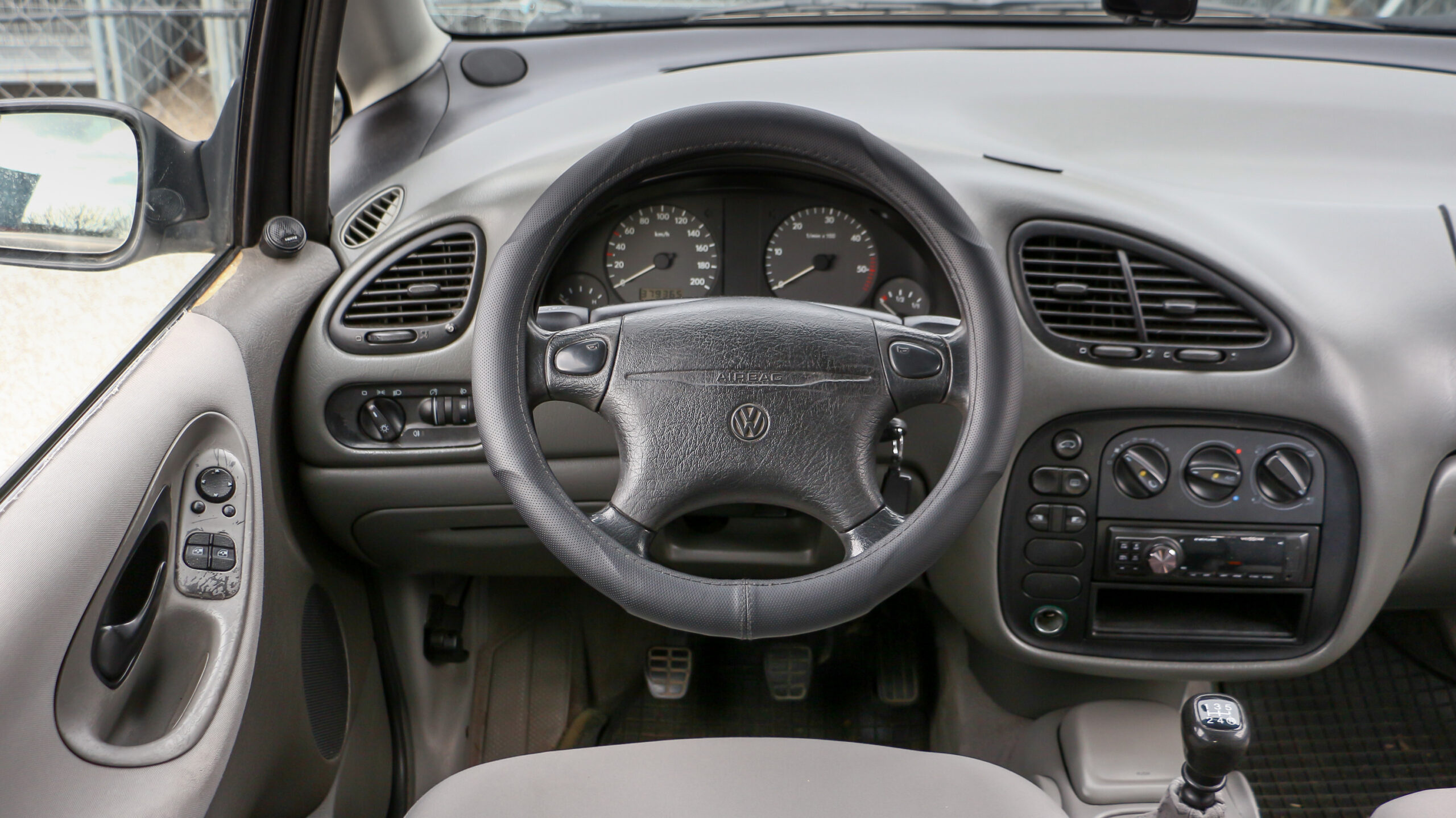 A Sharanba beülve meglepően igényes látvány fogad. Néhány részleten látszanak az évek, de semmi olyan nem szúr szemet, amit 24 évesen fel kellene róni egy autónak. Látszik, hogy erre a Sharanra vigyáztak és valószínűleg tényleg családi használat során került bele a közel 400 ezer kilométer. Az autónak minden elektromos extrája működött, még a hátsó oldalablakok elektromos kibillentése is. A motor - miután megtudtam, hogy hol a rejtett kapcsoló - első önindítófordulatra beröffent és határozott rántással, majd folyamatos, egészséges traktorhanggal a tudtomra adta, hogy jár. Nem tudom nem megemlíteni, mennyivel kulturáltabb és szofisztikáltabb mindez egy korabeli 1.9 TDI A4-ben, pedig a motor csavarra azonos.