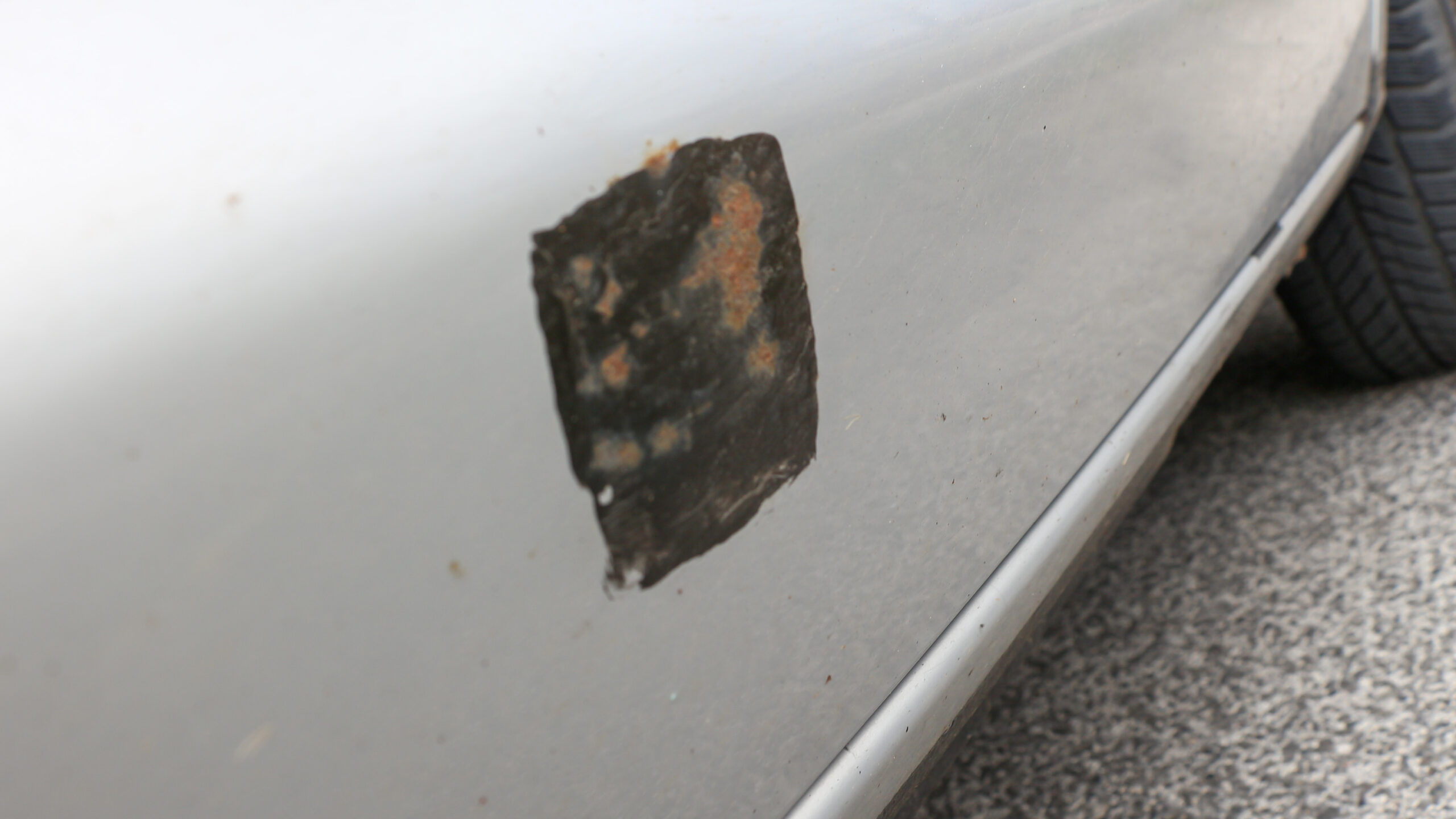 A fekete foltok alatt bizony varrat is van, néhol sikerült szintbe hozni, néhol nem - teljes lakatolásnak semmiképp sem nevezném, de ha rendszeresen csiszolják és festik, még egy-két műszakit adtak vele a kocsinak, egyébként is: ki tudja, hogy mikori a "javítás"?