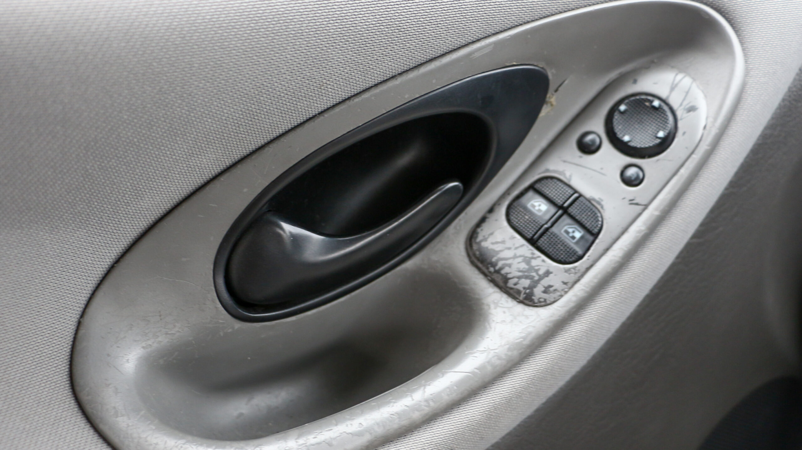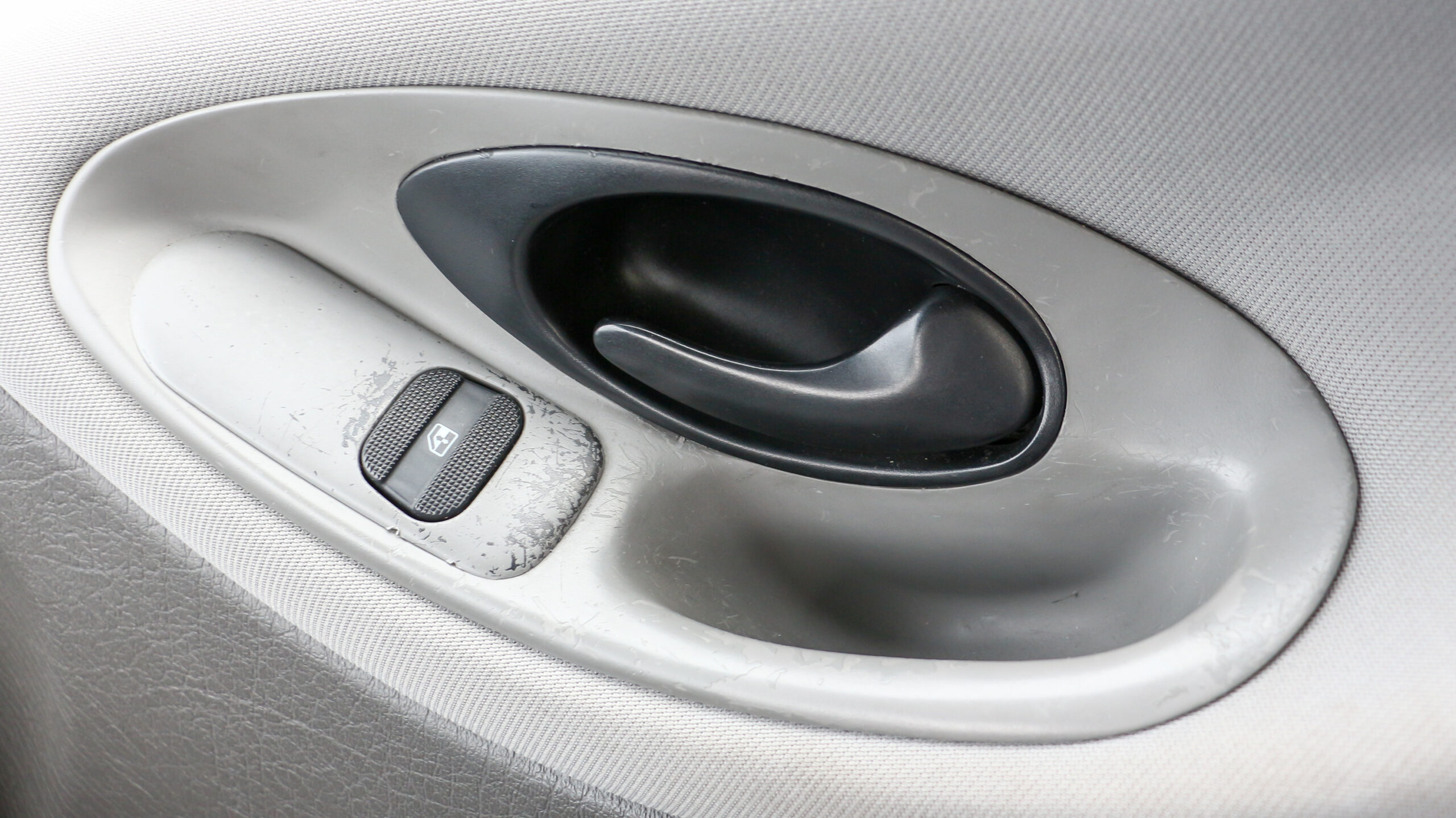 A magas, és még így sem ellenőrizhető futásteljesítmény nem látványos, a beltér legcsúnyább eleme a bal első kilincs környéke - erre az autóra vigyáztak