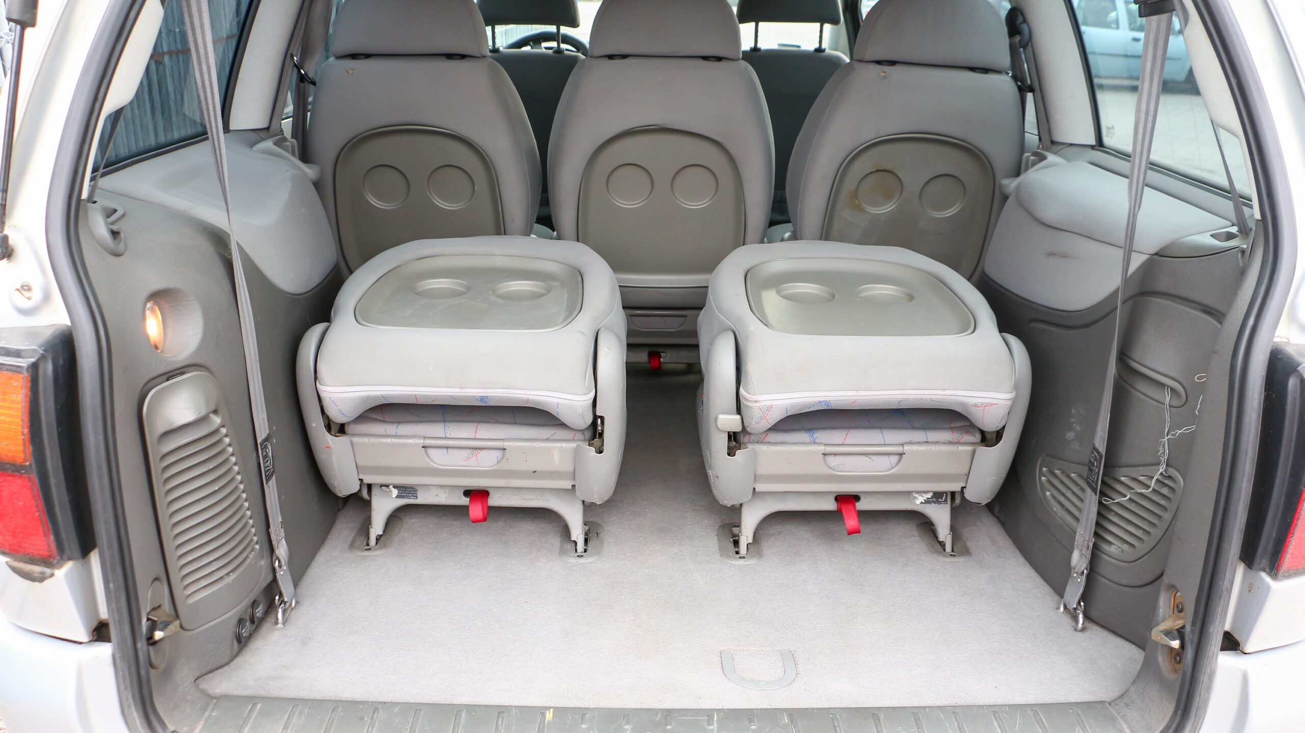 Viszont ez a kocsi az állapoton túl is sok meglepetést tartogatott. A fűtésének állítási lehetősége például hiába csak manuális, azért biztos ami biztos kétzónás, hátra külön tekerőkkel rendelkezik; az első ülések forgathatók, a hátsók pedig mind ledönthetők, felnyithatók, vagy akár teljesen el is távolíthatók. Isofix csatlakozókkal természetesen nem találkozhatunk benne, de azért egy mai alap-Lodgyval összehasonlítva jól látszik, hogy a nagycsaládok szükségletei nem sokat változtak az évek során: legyen hely, sok ülés és végtelen praktikum. Akinek tényleg csak ennyi számít, annak nyugodtan kijelenthetem: ez is megteszi. Persze a biztonságát egyetlen új autóéval sem érdemes összehasonlítani, légzsák például csak elöl van benne, viszont pozitívum, hogy a hétből hat ülésnek hárompontos a biztonsági öve. Súlyban és fogyasztásban is jobb választás sok újabb, vagy akár új vetélytársánál, viszont számolni kell vele, hogy a közelében sincs a szmogriadókor Budapesten használható besorolásnak. Nyilván, félmillióért nem kell csodát várni.