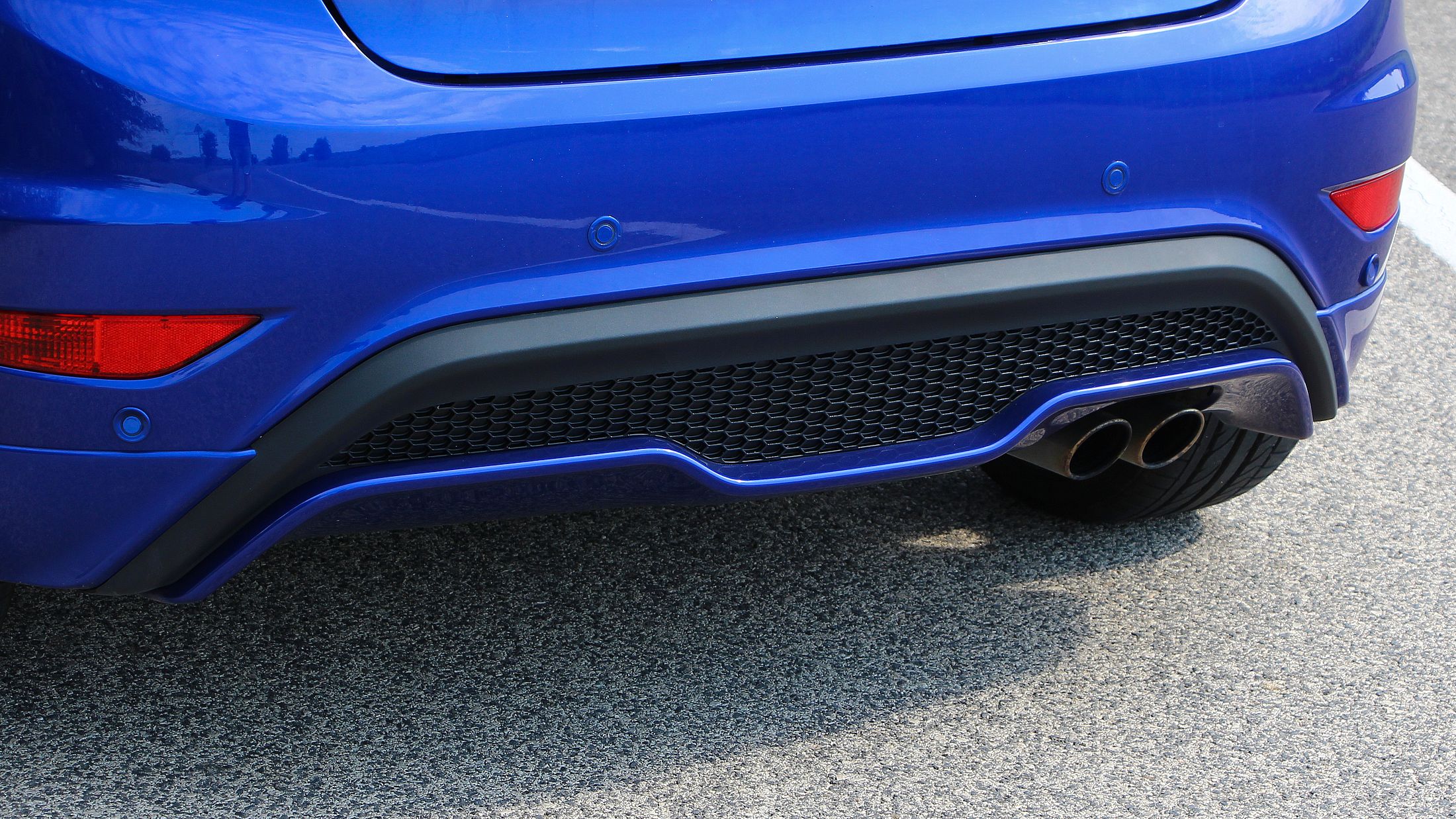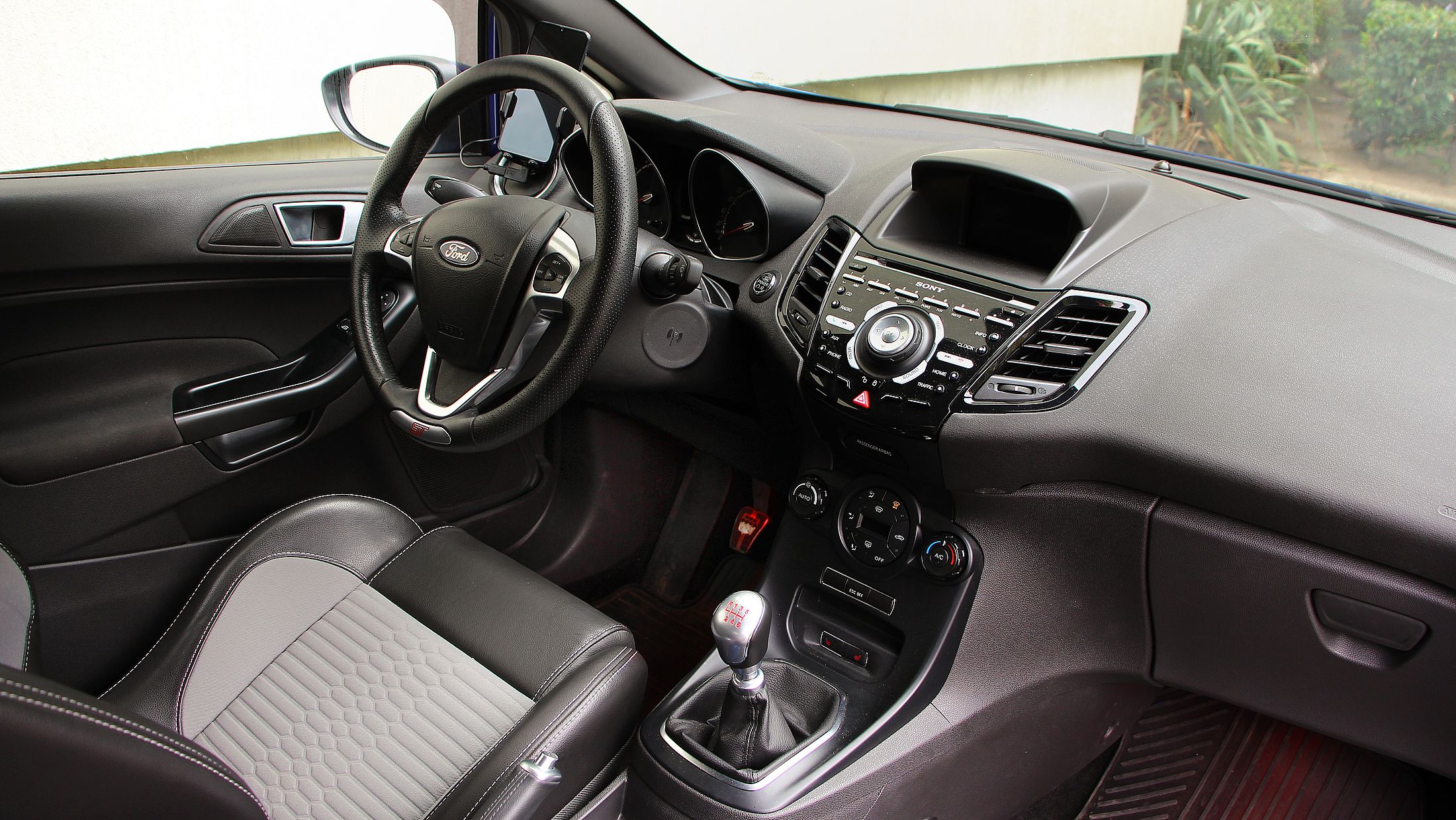 Ízlésesen öltöztették fel egyébként a sportos Fiestát. ST feliratok díszelegnek rajta mindenfelé, de ha nem lennének, a méhsejtmintás hűtőrács, a küszöbtoldat, a hátsó szárny, a diffúzorbetét és a dupla kipufogóvégek így is elárulják. Az egyedi, 17 colos felnikről és a vörös féknyergekről nem is beszélve. A gyönyörű kék fényezésen egyetlen apró hiba sincs. Nem is volt, amit többek között a festékvastagság mérése is igazolt. Az utastér még mindig kitűnő állapotú. Szerencsére itt sem játszották túl a sportosságot. Az ST-feliratos, kagylósított, bőr/kárpit első ülések azonnal megadják az alaphangulatot. Jutott azért ST felirat a bőrborítású kormánykerékre is, illetve fémbetét dobja fel a hatfokozatú váltó karját, illetve a pedálokat. Kopásnak egyelőre nyoma sincs. Hátul főleg, mivel a háromajtós kasztni miatt eleve nehéz hátra bekászálódni, lelkiismeretfurdalás nélkül nem is lehet oda utasokat ültetni.