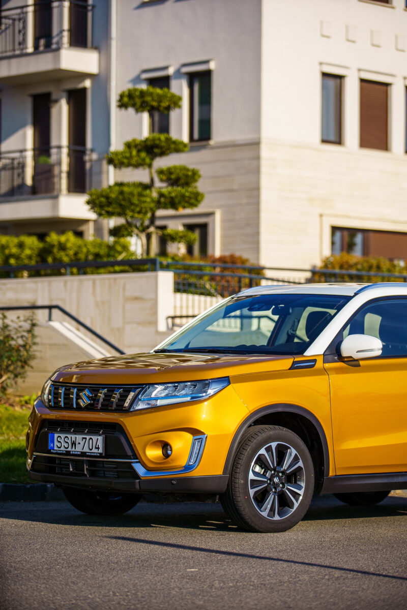 Vagányságból jeles a Vitara, összességében és autóként is meglepően jó, automata váltó, összkerékhajtás, kéttónusú fényezés és panorámatetőt egyaránt elérhető hozzá, a LED fényszórót és a távolságtartós tempomatot sok más mellett alapáron adja (Fotó: Lázár Péter)