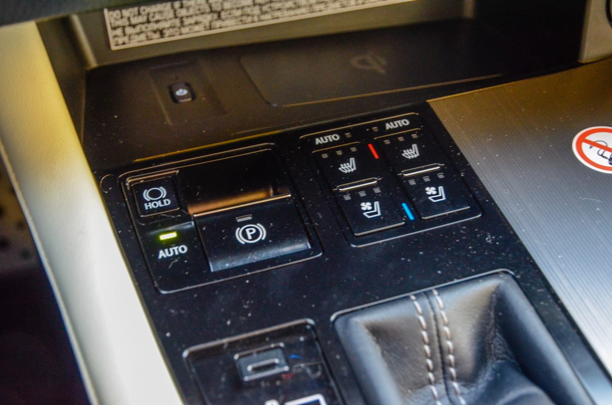 Csere után a 450h már egy teljesen más világot képviselt mind dinamika, mind pedig élmény szempontjából. A combtámasz helyett komoly oldaltartást kapunk az ülésekben, a sima bőrkormányt perforált bőr váltja. Az F-Sport számos helyen különbözik a Luxurytől, és itt nem csak a belsőre és a külsőre kell gondolni. A felfüggesztés is eltér, itt már adaptív futóművel van dolgunk, melyhez aktív stabilizátorok is társulnak. Ezzel a csomaggal igazi élmény volt a kanyarvadászat. A 2,2 tonnás tömeg abszolút nem érződött, nagy könnyedséggel és élvezettel lehetett fűzni a kanyarokat. A fizika határait időnként csak a gumik halk visítása jelezte, de még ekkor sem vált instabillá vagy kezelhetetlenné a nagy monstrum.