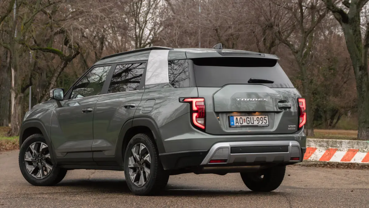 Egyre kevesebb autó tud meglepetést okozni az újautó-piacon, hiszen rengeteg az azonos platformra épülő modell, ennek köszönhetően sokszor a küllemük is rendkívül hasonló, nem beszélve a tökéletesen egyforma kapcsolókról, díszbetétekről, vagy épp infotainmentekről. A KGM ilyen szempontból üde színfolt a színtéren, a Torres pedig mondhatni különc, mivel úgy tud jellegzetes formatervet felmutatni, hogy lényegében egy klasszikus SUV sziluettel rendelkezik.  Habár nem ez a márka slágerterméke, a hibrid verzió megjelenésével viszont egyre több jelenhet meg az utakon. Küllemében szinte semmi különbség nincs a sima benzines és a hibrid Torres között, kizárólag a csomagtér-ajtón található plakett utal az összetettebb hajtásláncra. Így a KGM takarékosabbnak mondott SUV-ja is rendkívül karakteres, markáns formatervvel bír, szinte semmi mással nem téveszthető össze. Az egyediségéhez nagyban hozzájárul a göncölszekér csillagképről mintázott nappali menetfény, de az oldalán a C-oszlop mögötti szürke díszbetét sem mondható megszokottnak. A formai játékosság viszont hátul szabadul el igazán, a "pótkerék imitáció" és a jobb szélre tolt kilincs miatt simán azt gondolná az ember első ránézésre, hogy oldalra nyílik az ajtó. Pedig a valóságban - ahogyan a legtöbb SUV esetében - úgy ez is fölfelé nyílik, ráadásul jelen esetben elektronikusan, mivel a kilincs csupán egy gombot rejt. A műszerfalat a két 12,3 colos kijelző, uralja. Fizikai gombokból nincs túl sok, többek között a hagyományos értelemben vett klímapanel is hiányzik, így szinte mindent az érintőképernyőről kell vezérelni. Gyakorlatilag ez az autó egyetlen Achilles sarka, főleg a konkurens modellek és az árcédula tudatában. Az infotainment lassú, a magyar fordítás több helyen is pontatlan vagy hibás, valamint néhány funkció nem feltétlenül abba a menüpontba került, ahol annak helye lenne. Számomra mégis a legfájóbb pont, hogy nem sikerült vezeték nélkül elindítanom a telefontükrözést, ugyanakkor azt nem lehet elvenni a Torrestől, hogy fizikai csatlakozóval hibátlanul, stabilan működött a funkció. Egyszerű, de nagyon ötletes megoldás a telefontartó alján kivágott lyuk, amelyen könnyedén átfűzhető a kábel, így legalább nincs annyira útban. Szintén pozitívum, hogy a menü kapott egy az okostelefonokéra emlékeztető fenti "műveletközpontot", amelyben könnyedén kikapcsolhatók az idegesítően sípoló, pittyegő, vinnyogó vezetősegéd funkciók, amelyek a Torresben az átlagosnál is szigorúbbbak. Amennyiben félreteszem a bennem lakozó tech-őrültet, úgy már nehezen tudnék belekötni az utastérbe. A burkolatok terrakottába hajló barnás árnyalat ügyesen tolja a prémium irányába a hangulatot, de azért akadnak olcsó, kopogós műanyagok is. A sofőrülés a tesztautóban elektronikusan állítható, és mindkét első fotel fűthető, sőt, ez a funkció még a hátsó utasok számára is rendelkezésre áll a csúcsmodellben. Ha már a második üléssor: kifejezetten nagy a lábtér, a klasszikus SUV-os kialakítás miatt a magasabb személyek haja sem fogja a tetőkárpitot súrolni. Hátul pedig még sötétítő roló is felhúzható az ablakokra. A csomagtér hatalmas, alapból 703 literrel lehet gazdálkodni, de a hátsó ülések mellőzésével akár 1662 literre is bővíthető a hasznos kapacitás. Mindez már csak azért is dicséretes, mert a sima benzines is pontosan ezekkel a paraméterekkel bír, vagyis a hibrid hajtáslánc nem vett el a hasznos térből. Na, de akkor nézzük a legfontosabbat: a hibrid hajtást, hiszen ez a legnagyobb újdonság a Torres életében. A rendszer alapját 1,5 literes, négyhengeres benzines erőforrás adja, amely önmagában 150 lóerőre és 220 newtonméter nyomatékra képes. Ehhez társul a 177 lóerős, 300 newtonméteres villanymotor, míg a képletet az 1,83 kilowattórás akkumulátor teszi teljessé. A rendszerteljesítmény a KGM szerint 204 lóerő. Papíron a vegyes fogyasztás 5,8 l/100 km, a tesztidőszak alatt pedig 6,5 liter volt a legkedvezőbb érték , de egy nagyrészt autópályás mérés során is megelégedett 8,16 literrel. Mindegyik jobb érték a sima benzines 11-12 literes átlagos fogyasztásához képest. A fogyasztás mellett a hibrid Torres hatalmas pozitívuma a menetkomfort. Elöl MacPherson, hátul többlengőkaros felfüggesztést kapott a SUV, kiválóan hangolt lengéscsillapítókkal, amit még a prémiumnak mondott autók is simán elirigyelhetnek tőle. A sorsukra hagyott vidéki utakon is kiválóan elnyelte az úthibákat. A tesztautón lévő 18 colos felnik bőven elegendők a Torreshez, ezek is jól mutatnak rajta, és a ballonosabb abroncsokkal a kátyúkat is jobban kimozogja. Nem meglepő módon a full hibrid Torres drágábban kerül a kereskedésekbe, mint a sima benzines. A számok nyelvére lefordítva mindez azt jelenti, hogy a belépő szinten (Club felszereltséggel) pontosan 2 millió forinttal kérnek többet a villanyosított SUV-ért. Ugyanakkor most akciósan 14 299 000 forint a sima benzines az alapára, míg a full hibrid 15 499 000 forinttól vihető. A tesztautó kapott még elektronikusan nyitható-zárható csomagtér-ajtót 399 ezer forintért, valamint feláras zöld fényezés 199 ezer forintért. A Torres eddig is egy korrekt SUV volt, azonban a full hibrid hajtáslánccal jóval kedvezőbb fogyasztást tud felmutatni, és így már bátrabban ajánlható a SUV-ok között keresgélőknek.