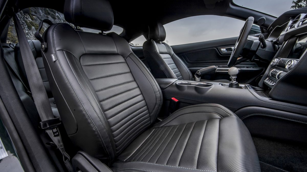 Legszembetűnőbb változtatás a friss Mustanghoz képest az új, osztás nélküli méhsejtmintás hűtőmaszk. Óvatosan keretezték krómmal, rendkívül finom részlet és teljesen eltüntették az emblémát. Hátul sincs GT felirat, a kis tányérra a Bullitt saját jele került, a klasszikus lovacskákat csak a felnikupakokon látjuk viszont. Elképesztően jól áll ez az egyszerűség a Mustangnak, hisz önmaga sem egy túl bonyolult jármű, és épp ezért szerethető, de nagyon. A klasszikus izomautó receptet viszont európai fejlesztők finomították úgy, hogy végre ne csak egyenesen legyen jó menni a Mustanggal, a Bullitt pedig még többet kapott a jóból.Az utasteret is csak finoman hangolták át, sötétzöld varrásokkal találkozhatunk a feláras Recaro sportüléseken, a műszerfalra pedig körkörösen csiszolt alumínium hatású betét került az eredetit idézve