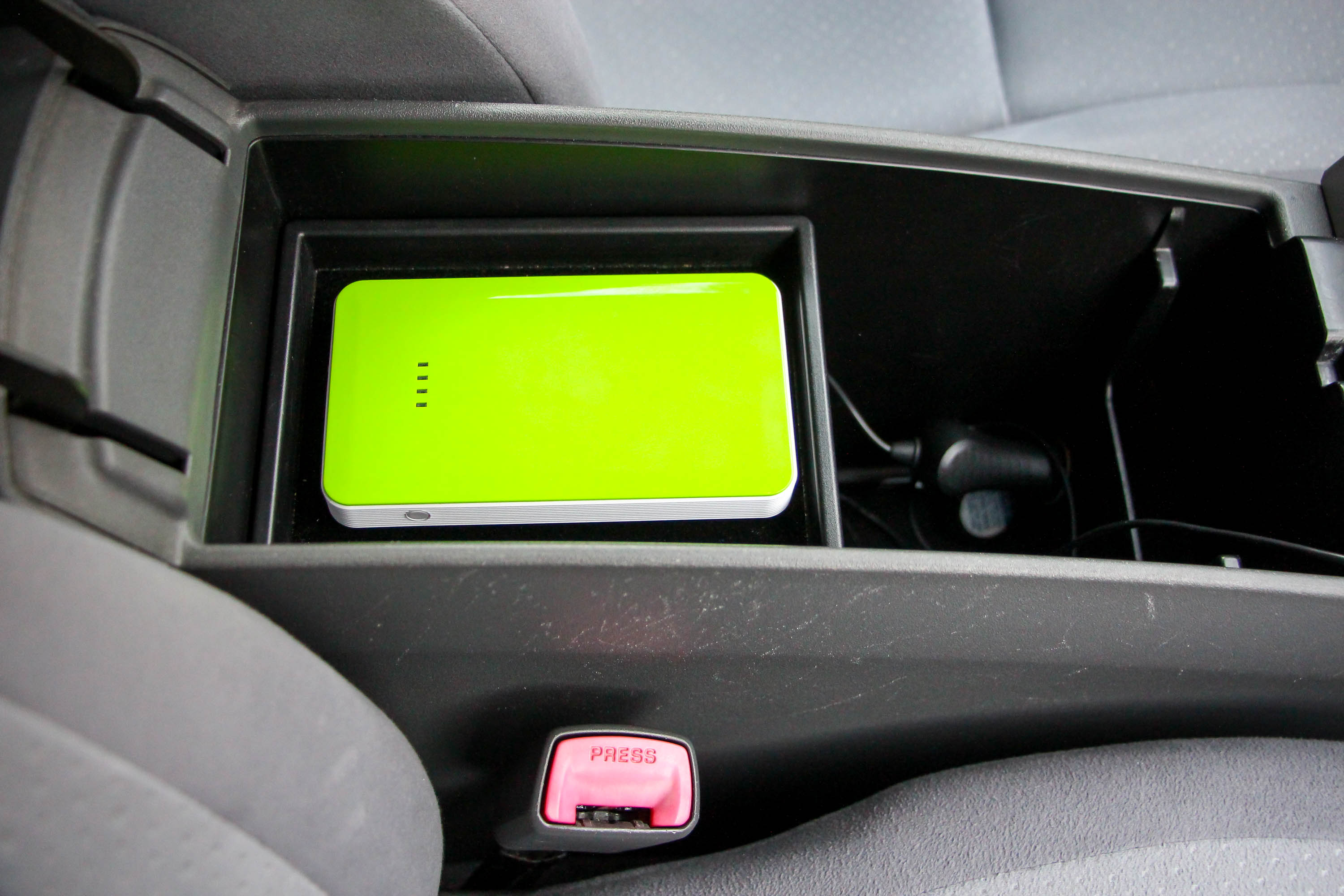 Mi van az ülések közötti rekeszben? Ez bizony nem más, mint az 6800 mAh-ás, 350A indítási csúcsáram leadására képes AXR indítási segély. Vicces, de miután az autót beindítottuk, akár szivargyújtó-csatalakozóval is feltölthetjük. Egy dolgot ne mulasszunk el: a segítségre szorult 12V-os akkumulátort is érdemes csepptölteni!