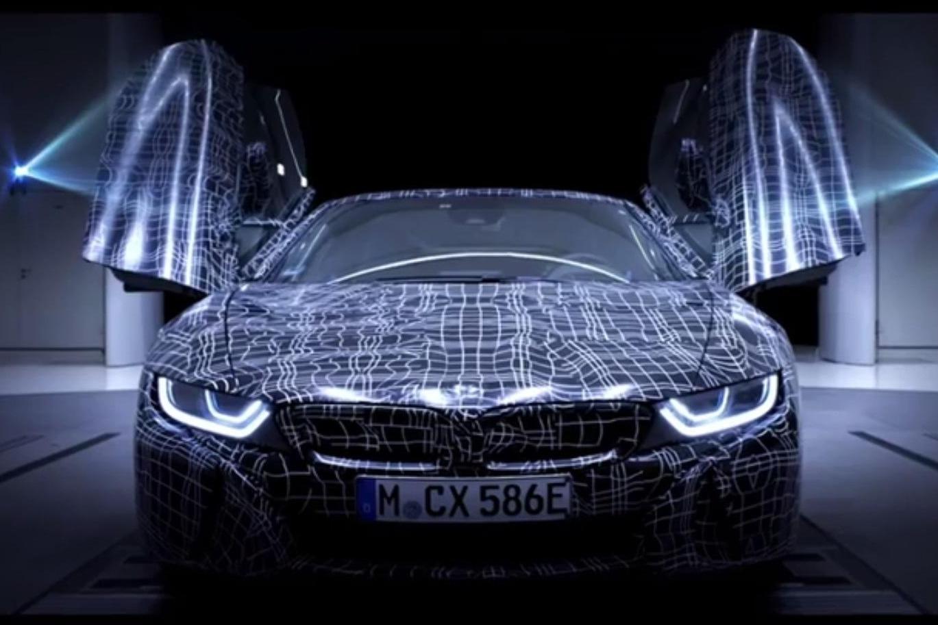 Jó ideje tesztelik már, az első hivatalos megjelenésre viszont idáig várni kellett. Továbbra sem láthatjuk teljesen az i8 Spydert, de nyitható tetejét már megvillantja.