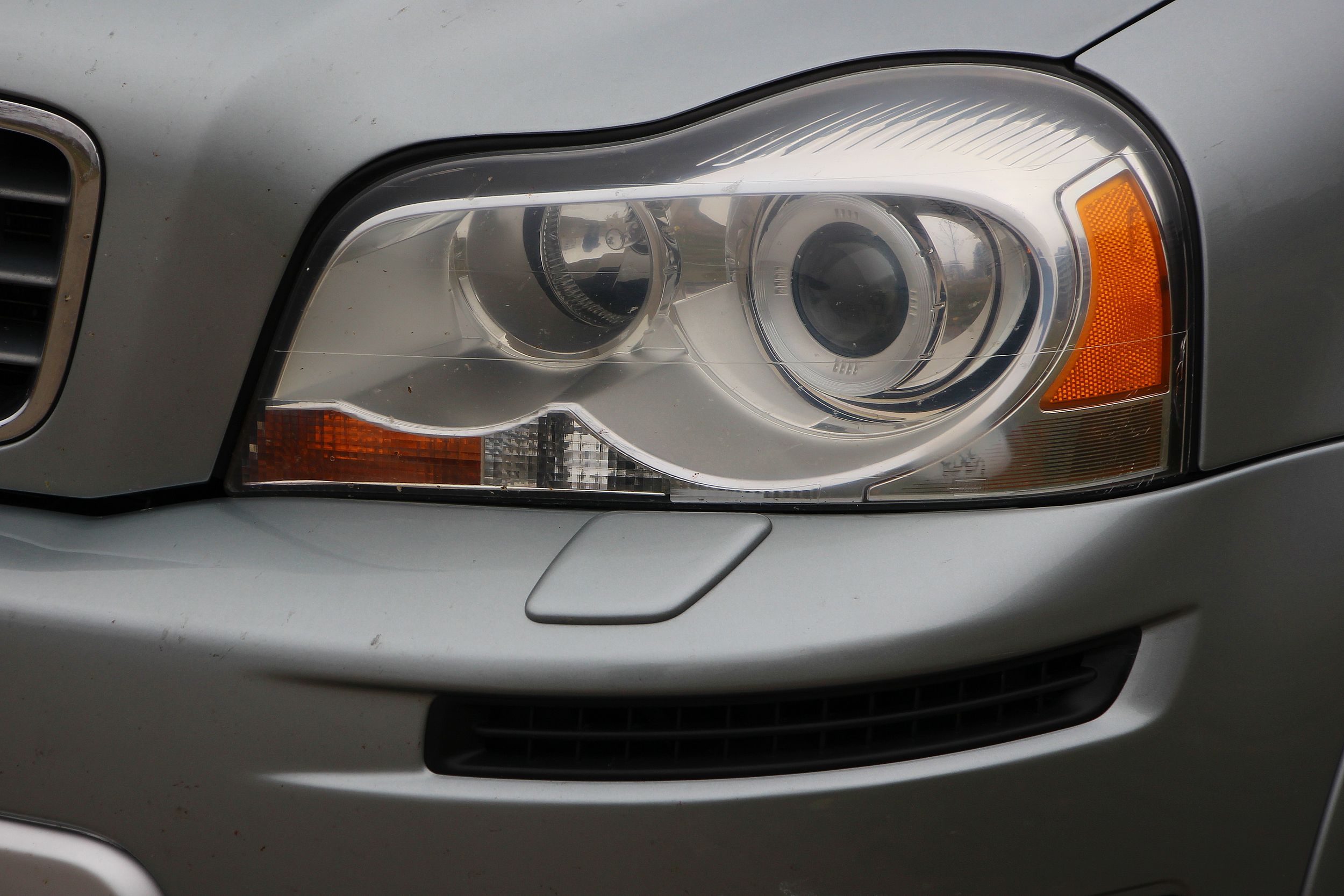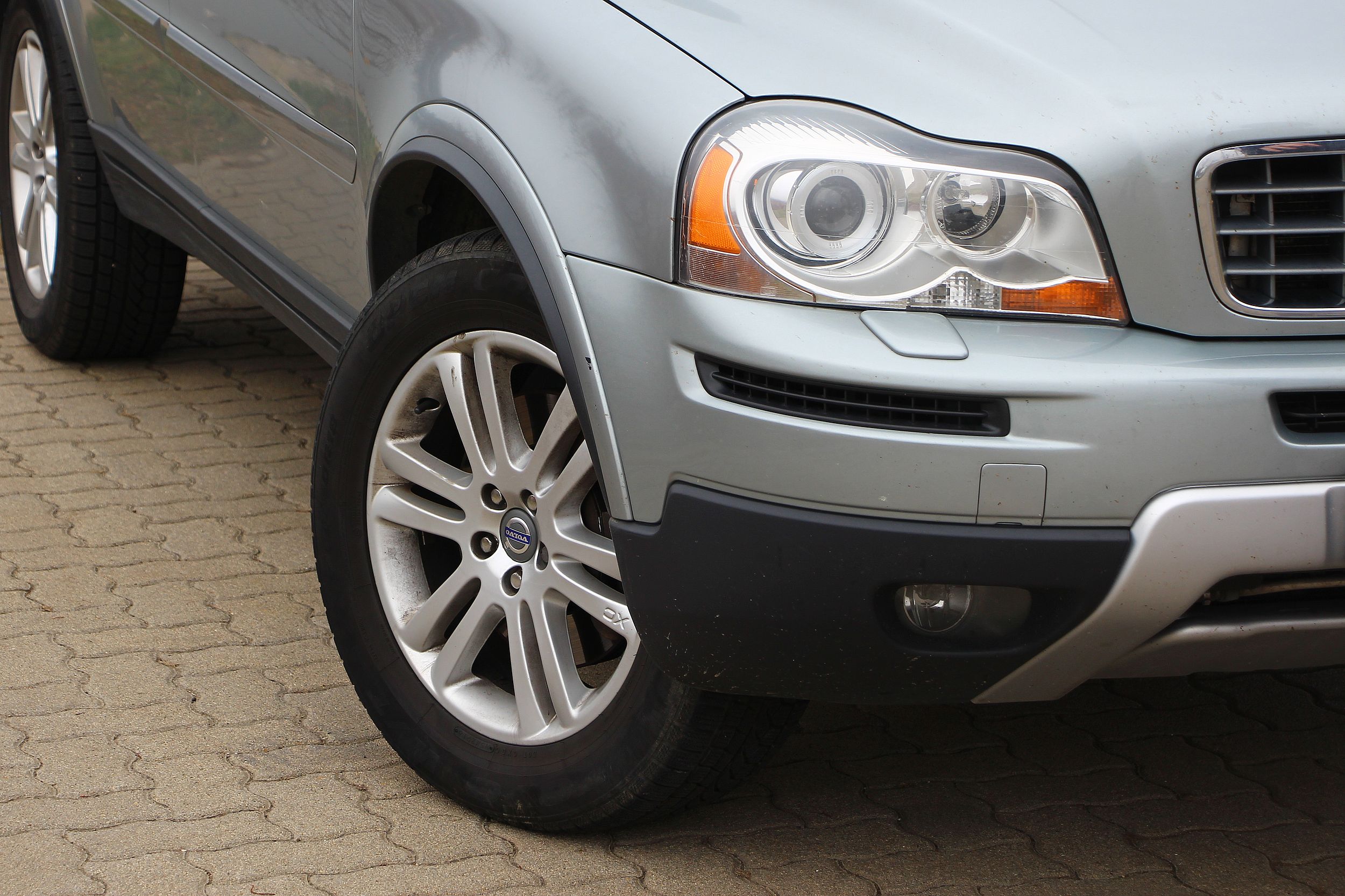Alig észrevehető, de mattulni kezdett az egyik fényszóró búrája. A felnikbe belevésték az XC90 feliratot