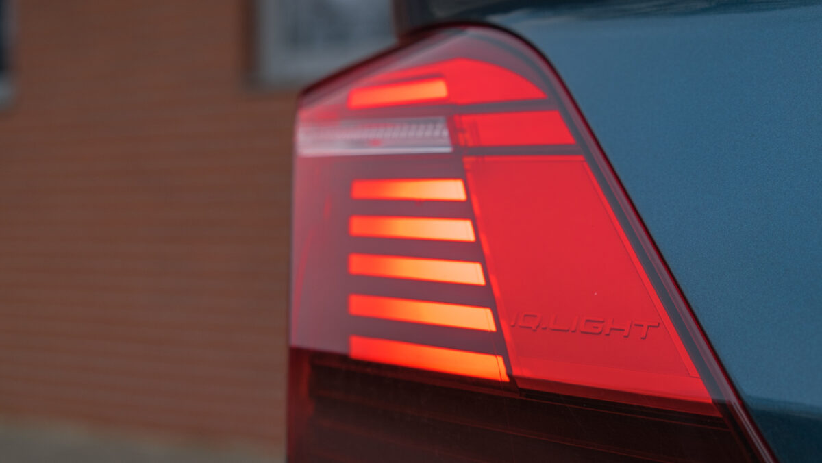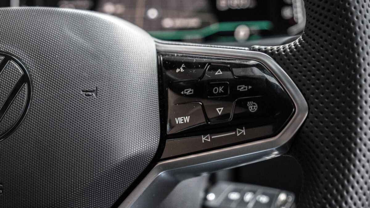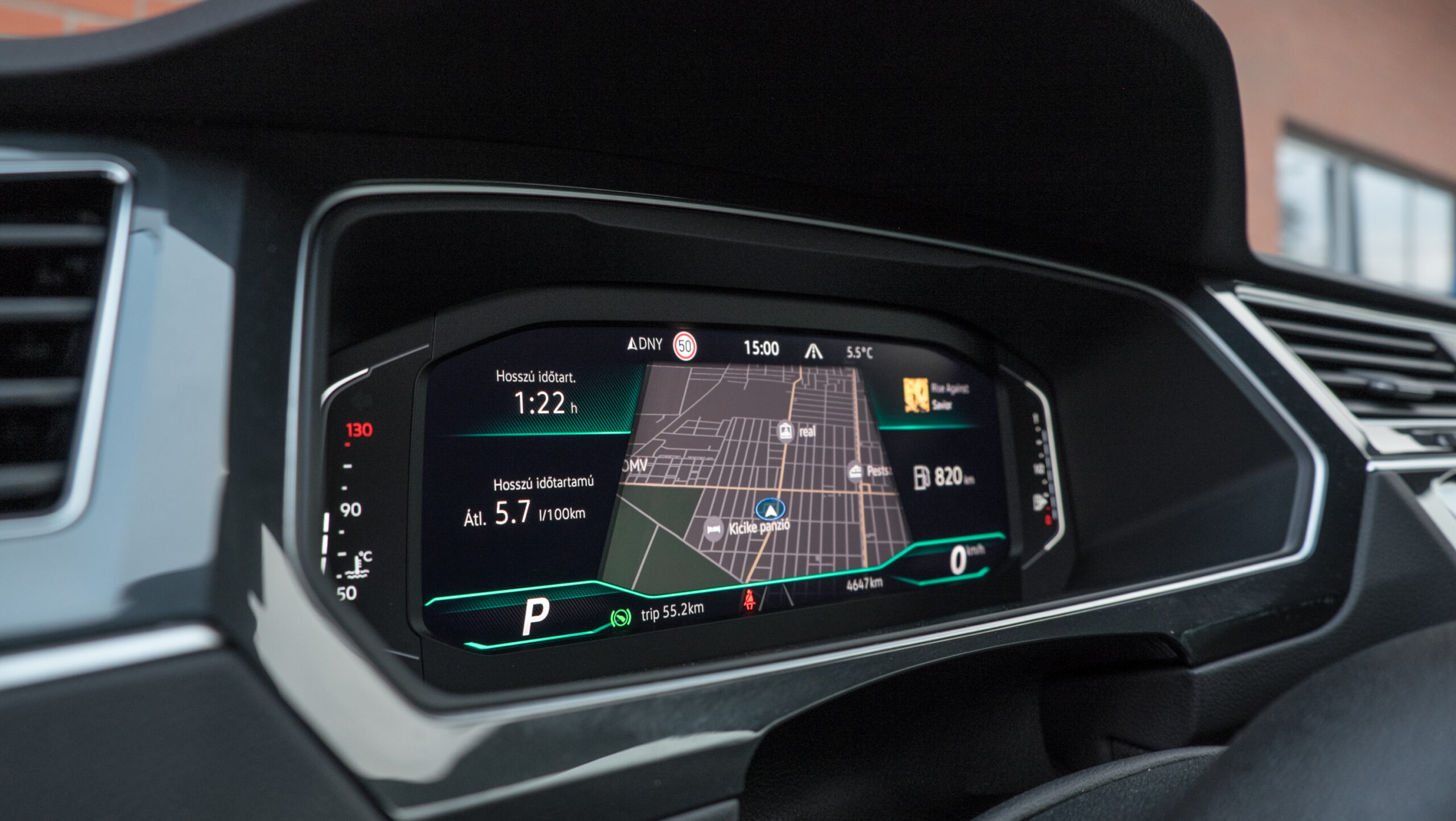 Mint például a hátsó lámpák, vagy az övvonal, a küszöb, meg ez a Nightshade-kék fényezés. Egyben van a forma, ez mindig is bejött, sajnos most a téli 17-es felnik rontanak a képen. Ha már szóba került a kormány, nézzünk szét a beltérben, mert vannak új elemek, mint a multimédia kijelzője és maga a szoftver. Vezeték nélküli telefontükrözést kapott, valamint a kormány mögé is kijelző került. Mindkettőnek szép a képe, gyorsak is, de a logika, miszerint a trip menüért könyékig kell beletúrni, továbbra sem jó irány. A rendszert viszont jó használni, gyors és 90%-ban érthető, és csak egyszer fordult elő, hogy egyáltalán nem kapcsolt be, alapvetően jól működött. Kezelőfelület és ergonómia terén egy VW nem nagy trükk, és nem is kell annak lennie. Ennek ellenére most úgy érezték, a frissítésnek kell hoznia valami különlegeset, és ezért elrontották a kormányt. Gombok helyett két érintő "sziget" került a küllőkre. Működés tekintetében teljes zsákutca, csak akkor nyomhatod meg, ha érzékelte, hogy rajta az ujjad a felületen, nyomásra késleltetve rezeg vissza és végzi el a feladatát. Tized-, vagy századmásodpercekről beszélünk, de pont olyan érzése van, mintha beragadnának minden nyomáskor.