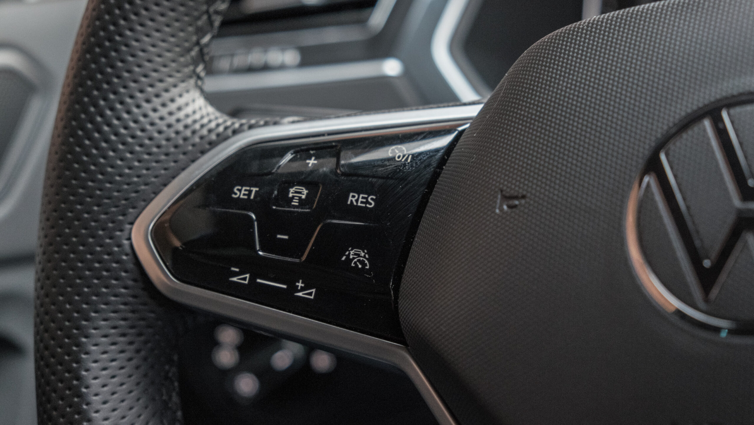 Van rajtuk érintős csúszka is, egyenértékű a használhatósága a BMW gesztusvezérlésével, fancy, de gombokat kérünk ehhez, vagy potmétert. Ezzel nem tűnik fiatalosabbnak az utastér, főleg nem azután, hogy a nagyjából 10 éve használt bicskakulccsal indítottuk be az új autót. Ma már a legtöbb kompakt modellben elérhető és gazdag felszereltséggel jár is a kulcs nélküli nyitás-indítás. Lehet hogy ez csak nálam érték, de érdemes volna haladni a korral. A Tiguan frissítésének nagy értéke a vezetéstámogató rendszerek bővülése. Beparkol magától utánfutóval is, ha arról van szó, de aktívan képes vezetni is magát, ebben már a korábbi verzió is elég jól teljesített. Az adaptív rendszerek is aktívan jelen vannak, mindig érezzük a kormányon az igazgatást, kijelzi ha autó halad előttünk és a tempomat is egyből lassít, ha kijöttek elénk. Gyorsítani talán túl későn kezd, ha épp mi váltunk sávot autópályán, leginkább csak akkor, ha már befejeztük a manővert. Új funkciója az adaptív sebességtartás, ami táblák alapján állítja át a tempomaton beállított sebességet.