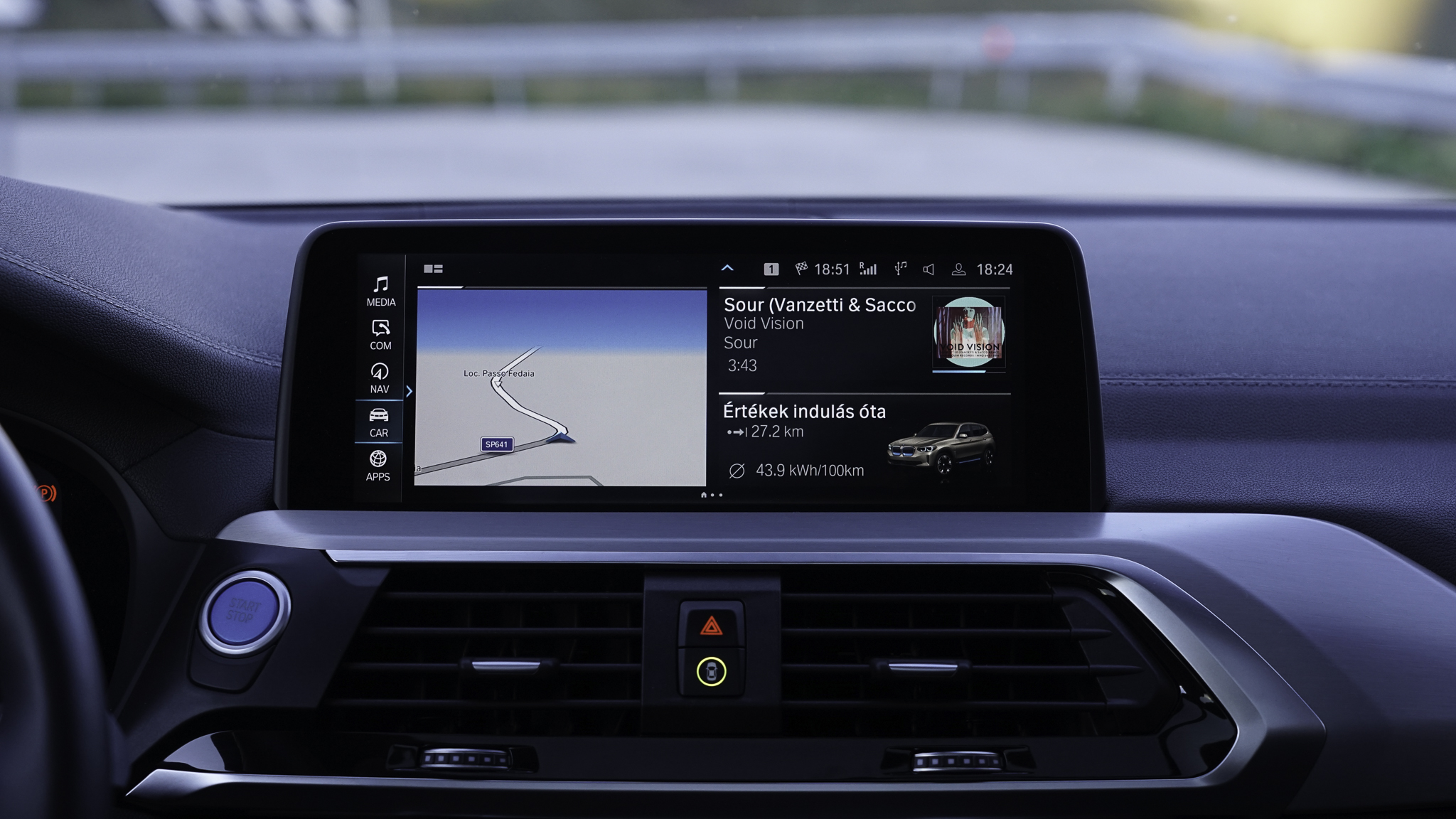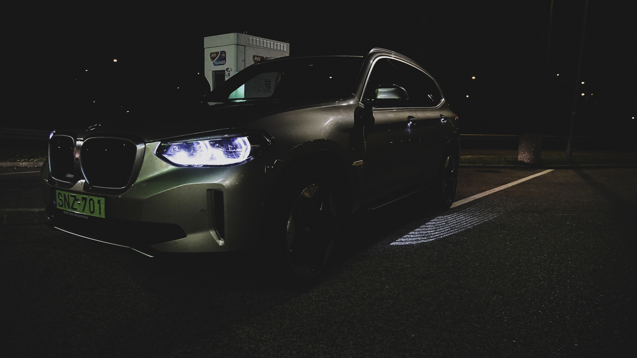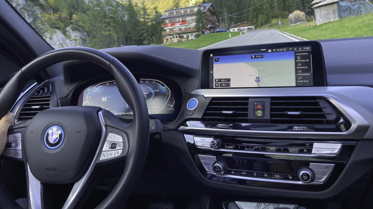 Egészen új megvilágításba tudja helyezni a kényelem fogalmát. Félreértés ne essék, a belsőégésű motorral szerelt X3-sok is nagyon kényelmesek, de ez tényleg más liga, ha nyugalomról és pihentető utazásról van szó. Az, hogy nincs motorhang és minimális rezonálást sem érzünk az altájékunkon, csak nagyon halk gördülési zajt hallunk és a levegő suttogását, egészen parádés. Erre igen nehéz lenne komoly arccal azt mondani, hogy más kell. A vezetéstámogató rendszerek hibátlanok. A sebesség-, távolság-, és sávtartó asszisztenssel is óriási haverok lettünk, annyira végtelenül jól teszi a dolgát. Ha megy a navigáció, lelassít ott, ahol kell, és tulajdonképpen teljesen leveszi az autópályázás nyűgét az ember válláról. Nem kóvályog a sávban, nem kanyarodik furcsán, tulajdonképpen pont ugyanúgy vezet, ahogy egy nagyon nyugodt sofőr. Nekünk pusztán annyi a dolgunk, hogy néha sávot váltsunk, figyeljünk és hallgassuk a Harman Kardon hangrendszerből szóló muzsikát. A többi modellben feláras hifi itt alapból jár a felszereltséghez, és te jó Isten! A minősége nagyjából olyan, mintha a Müpa hangversenytermében ülnénk: a legkisebb hangokat is tökéletesen és tisztán helyezi el a térben. Ez kombinálva azzal, hogy kvázi nincs semmilyen más hanghullám az utastérben, egészen pazar, pláne ha kicsit hangoljuk is az iDrive-ból.