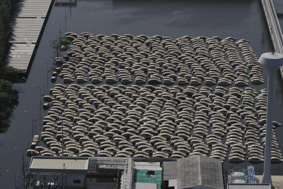 Az év legszomorúbb képsorozata a Honda thaiföldi gyárából az áradások után.