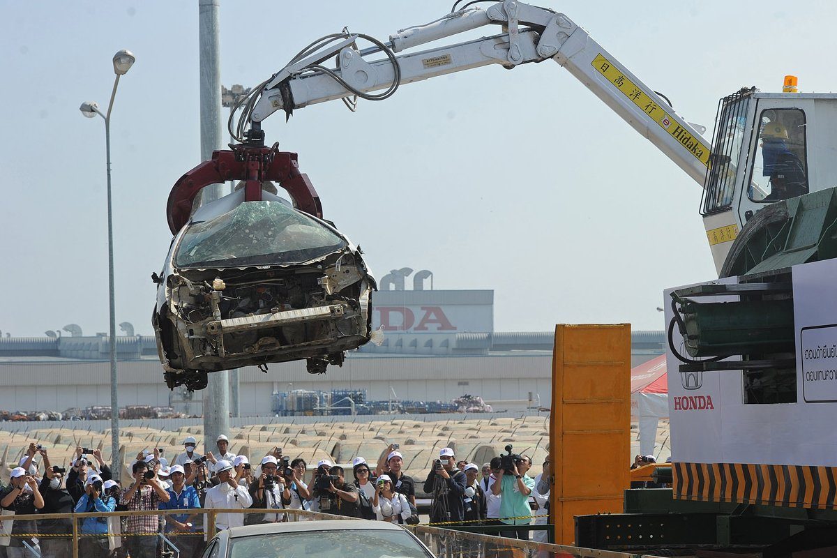 A Honda Ayutthaya tartományban található gyárát sem kerülte el a végzet. A gyáriak annak érdekében, hogy a szétázott kocsik sose kerüljenek ki a piacra, megkezdte az itteni telepen található több mint ezer autó bezúzását.