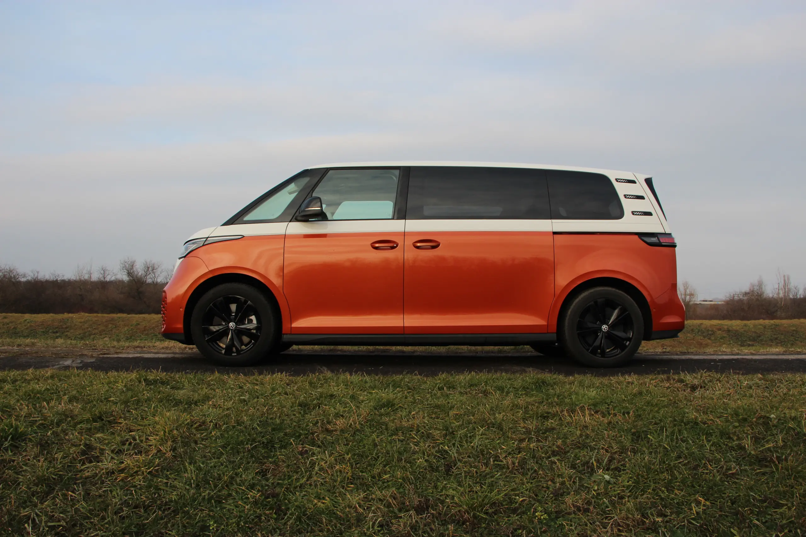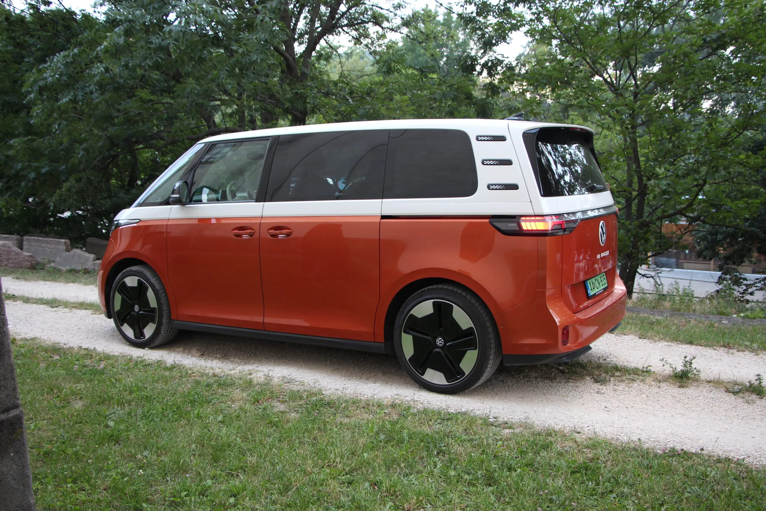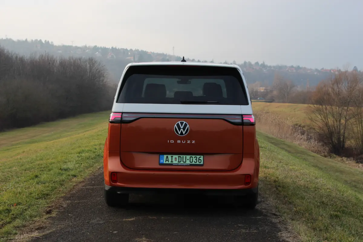 Formában csak oldalról látszik a különbség. Elöl ugyanazt a vidám arcot kapja, ami az első Transporterre emlékeztet, mindezt feldobhatja a kéttónusú fényezés. Lényegében az ID. BUZZ is egy téglalap alakú haszonjármű, ugyanakkor a formai játékokkal nagyon ügyesen álcázzák ezt, hiszen kerekded az arca és hátul a teljes szélességében végigfutó fényhíd, illetve az óriási embléma éstípusfelirat elvonja a figyelmet az egyszerű dobozformáról. Ugyanígy látványos megoldás aC-oszlopokon a légbeömlőkre emlékeztető díszbetét, valamint a kis hátsó légterelőben végződő tető. Egy szó, mint száz, a forma telitalálat, akár személyszállításra, akár dobozos furgonnak vásárolják az ügyfelek.