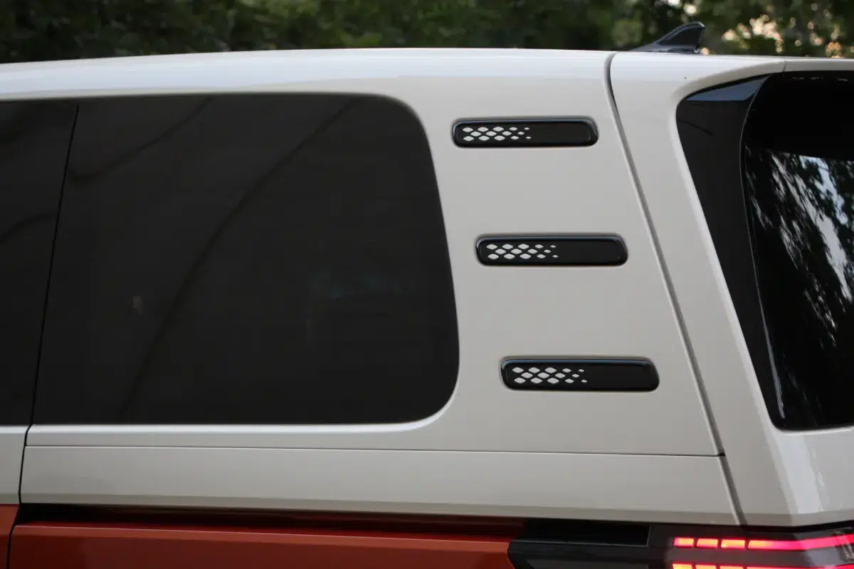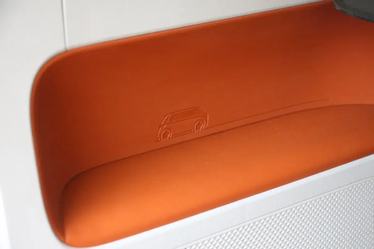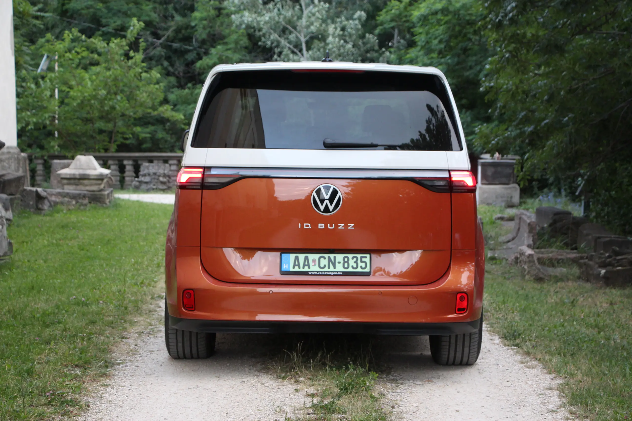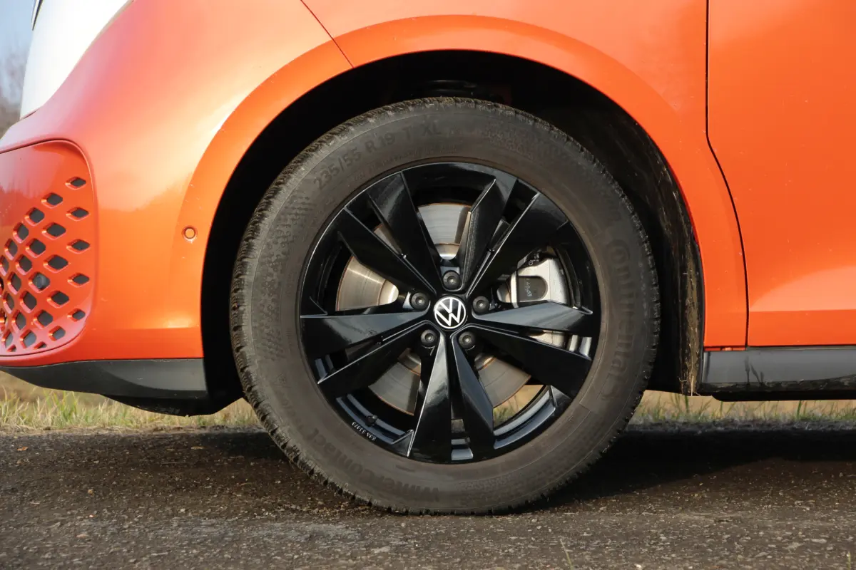 Formában csak oldalról látszik a különbség. Elöl ugyanazt a vidám arcot kapja, ami az első Transporterre emlékeztet, mindezt feldobhatja a kéttónusú fényezés. Lényegében az ID. BUZZ is egy téglalap alakú haszonjármű, ugyanakkor a formai játékokkal nagyon ügyesen álcázzák ezt, hiszen kerekded az arca és hátul a teljes szélességében végigfutó fényhíd, illetve az óriási embléma éstípusfelirat elvonja a figyelmet az egyszerű dobozformáról. Ugyanígy látványos megoldás aC-oszlopokon a légbeömlőkre emlékeztető díszbetét, valamint a kis hátsó légterelőben végződő tető. Egy szó, mint száz, a forma telitalálat, akár személyszállításra, akár dobozos furgonnak vásárolják az ügyfelek.