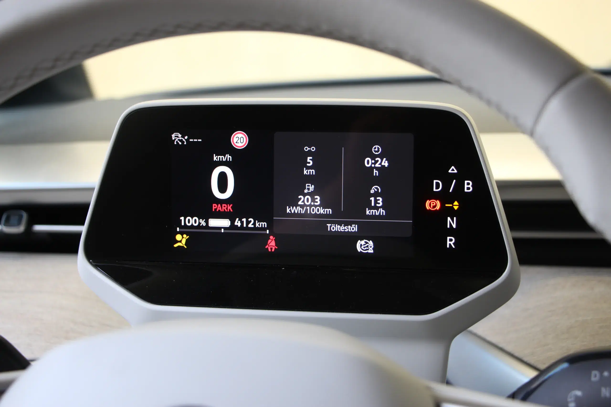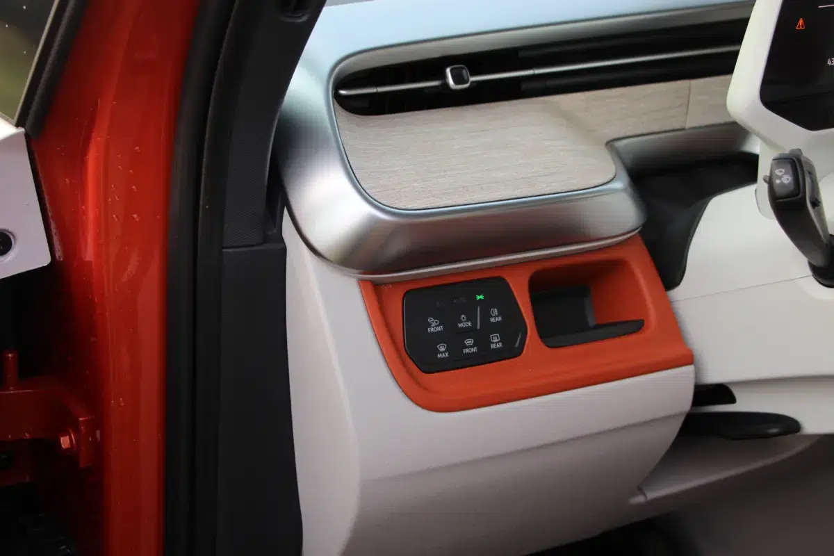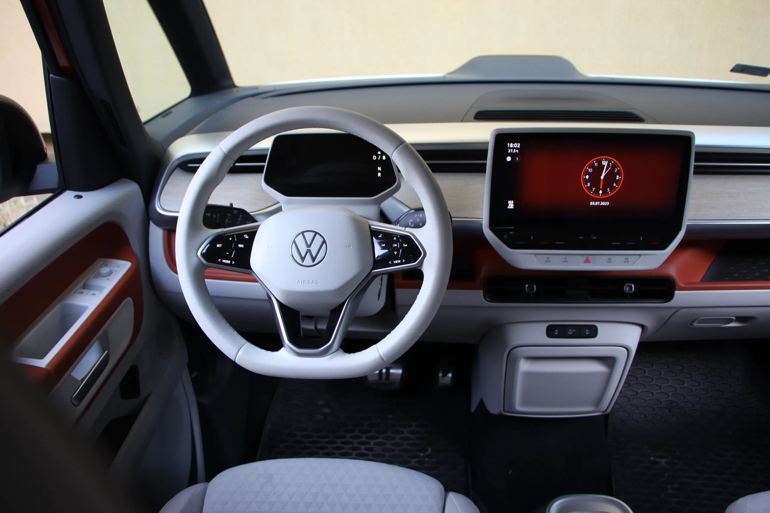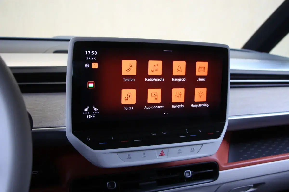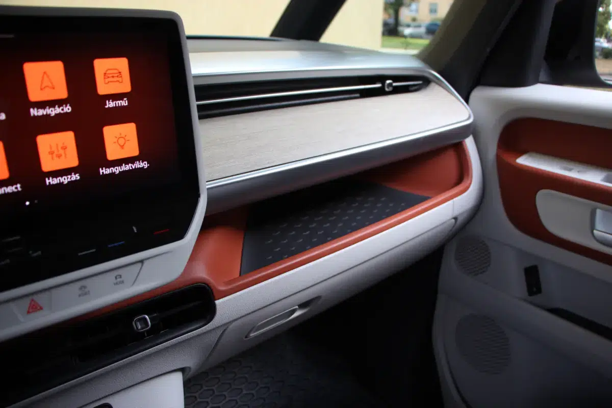 A műszerfal kialakítása egyszerű, ergonomikus, ismerős lehet a többi ID modellből, ahogy az infotainment rendszer is, viszont a Buzz rengeteg kisebb-nagyobb tárolóhelyet biztosít, amiért jár a sok-sok pirospont. A vezetőülés is nagyon kényelmes, tényleg jó vele hosszabban is utazni, viszont ez nem lehet olyan hosszú, mint mondjuk egy dízel Multivan esetében. Egy kos öröm az ürömben, hogy a hosszabb tengelytávolságú modell is tud annyit ,mint a rövidebb, hiszen több akkumulátor cella fér alá.