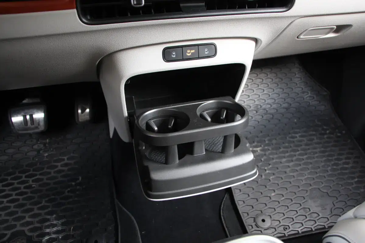 Amint már említettem. oldalról látszik igazán a különbség a hosszú és a rövidebb változat között. Ez a különbség a számok nyelvén 25 centiméter, ugyanis a hosszabbik karosszéria 4962 mm-re nőtt, a rövidebbnél pedig 4712 millimétert mutat a mérőszalag. Szélességük, magasságuk azonos, viszont a tengelytávolságban is ugyanúgy 25 centi a differencia, előbbi értéke 3239 mm, utóbbié pedig 2989 mm. Ezt a többlet űrtartalmat az újabb ülőhelyekre és az ott helyet foglalók kényelmére fordították a mérnökök, de természetesen jól variálható az utastér, akár furgonszerűen nagy tárolóhely is kialakítható, magyarán akár 2,5 köbméternyi tér. Ám ez már a rövidebb tengelytávú változatra is igaz, azzal is sikerült hatalmas matracot szállítani egy lakberendezési áruházból, igaz ebben "csak" 2,2 köbméternyi a tér, ha az üléseket lehajtják. A pakolhatóságot pedig az is megkönnyíti, hogy hatalmasra nyílik a hátsó ajtó, valamint az oldalsó tolóajtók is segítenek egyszerűbbé tenni a beszállást, mindkét változaton. Egyedül a töltőkábelek zavarnak be, mert nincs külön rekesz a számukra.