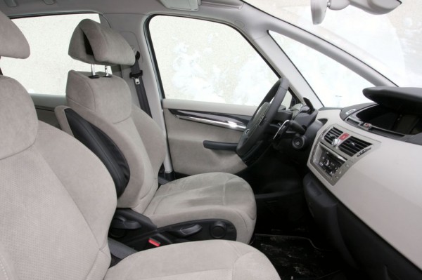 Az utastérrel kapcsolatban nem félünk kimondani, hogy anyagminőségét tekintve a C4 Picasso a legjobb a kategóriában: a helyenként érdekes textúrájú műanyagok puhák, tapintásuk kellemes, és az illesztésekkel sincs gond. Jellemző, hogy a kézzel érintkező elemek (pl. ablakemelő gombok panelje, ajtóbehúzó) felülete finoman gumírozott, hasonlóan, mint az Alfákban szokás; a dekoráció a krómozott betétekkel és a fényes felületekkel valóban ékesít, kerülve az unalmas, sokszor ízléstelen „fából műanyag” stílust. A dicséreten kívül azért akadnak bosszantó apróságok. A kormány közepe túl van zsúfolva - ahogy a